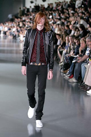 In the Spring 2005 show Hedi Slimane brought a deafening dose of rock n’ roll to his show. Slimane brought slim fitting denim and leather jackets into the mainstream. Slim cut suits in white and red with a grunge undertone were seen but he still managed keep Dior’s true nature in tact. It’s ok to wear clothes that form to your body, guys. It’s not just for girls anymore. Mick Jagger would be so proud.