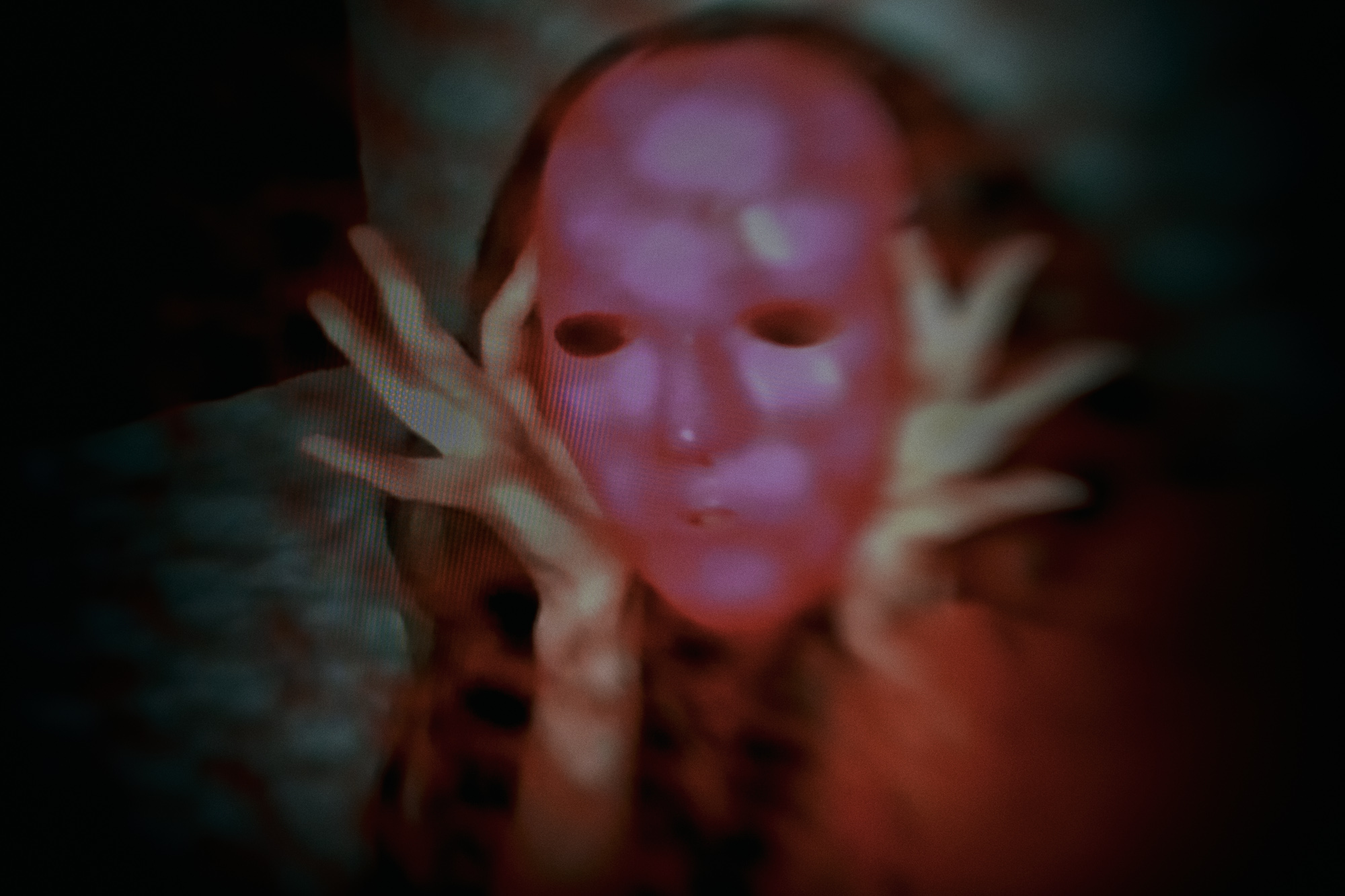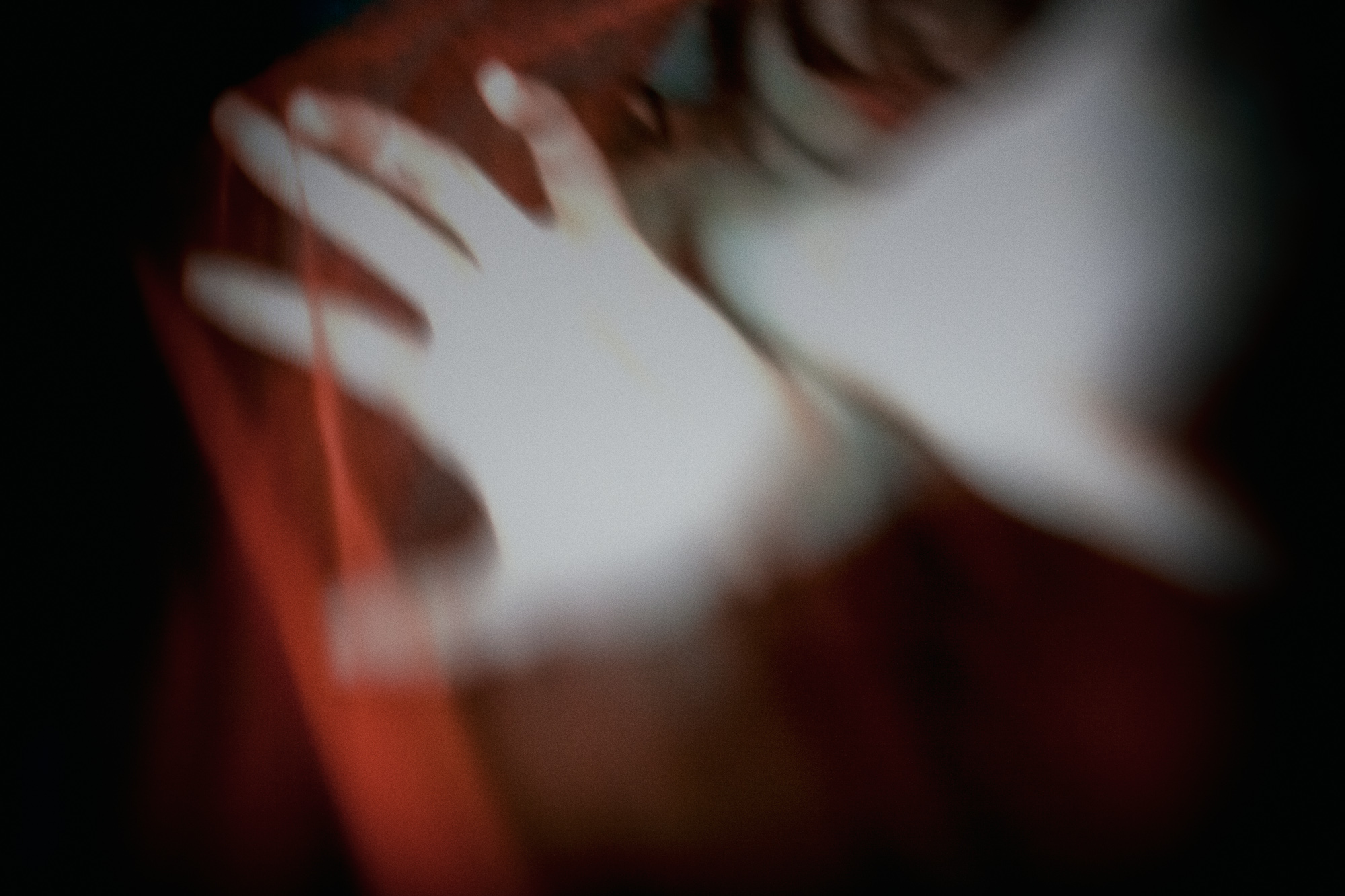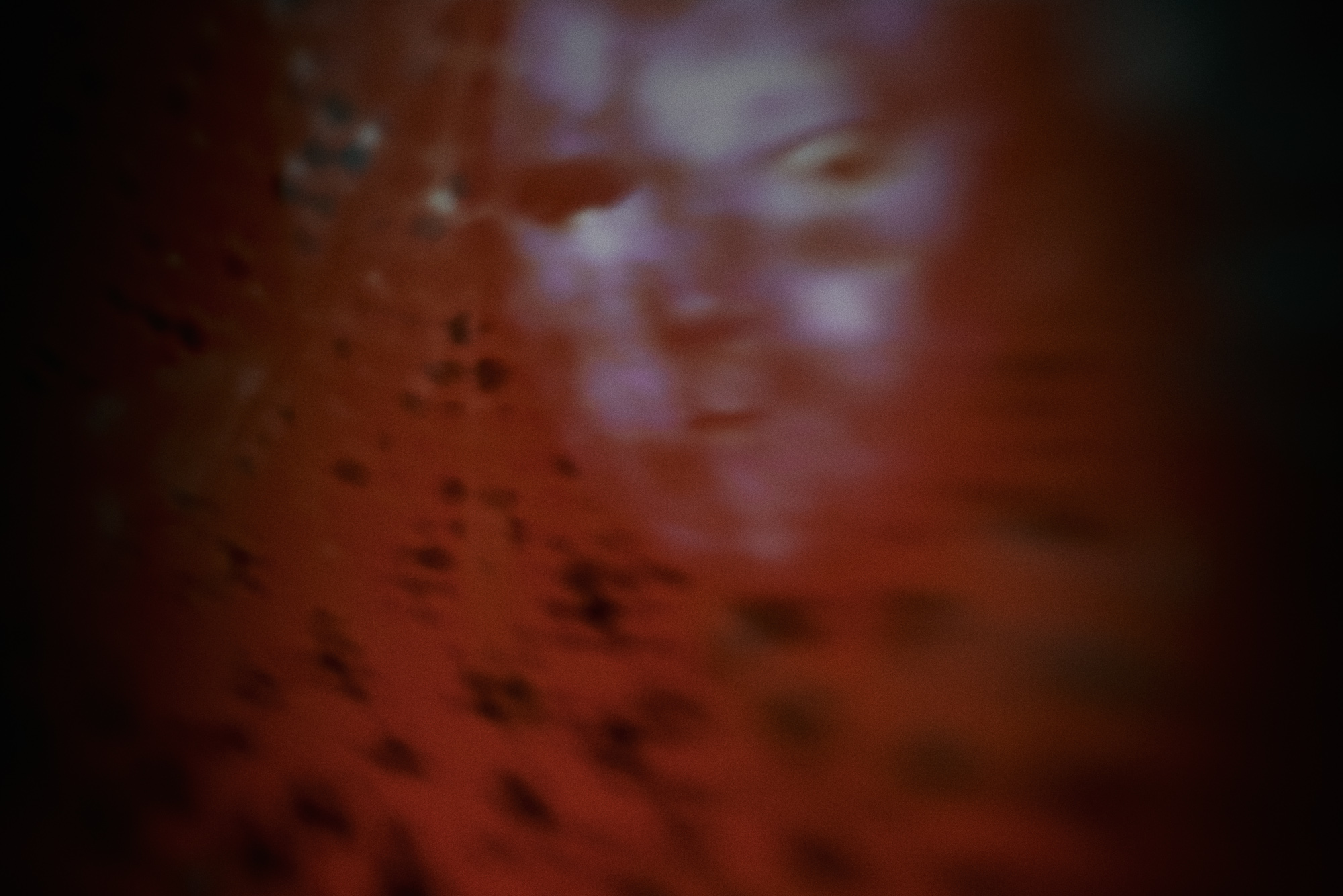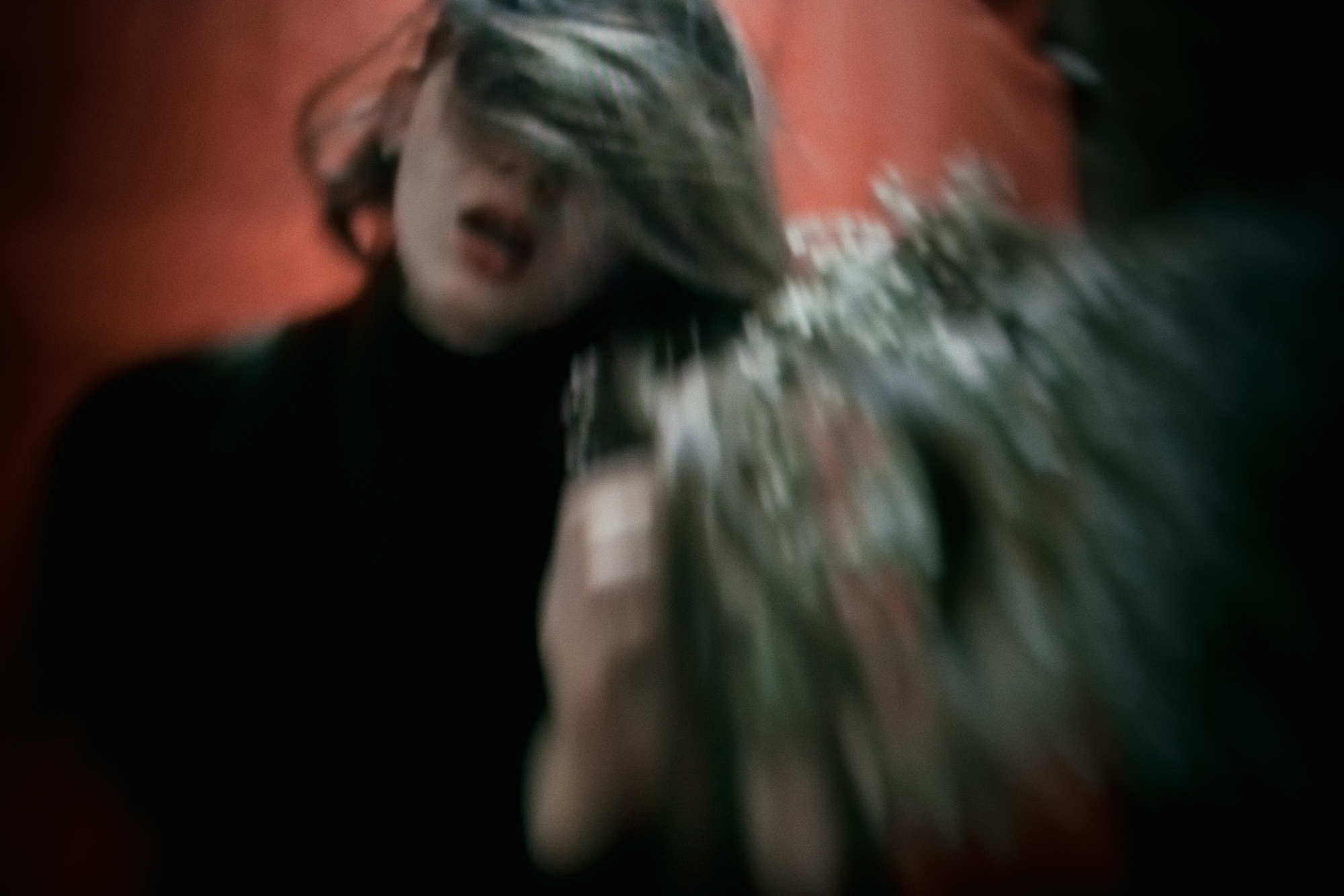 To outline the story: it is about a girl who is trapped at home having bizarre visions of herself. Nightmarish visions resulting from her isolation and born in the liminal space between being awake and asleep. I like the idea of the pictures being stills from a long-forgotten horror or mystery film. I like their expressive and ambiguous quality. The blurriness was created by me using a special lens while capturing the screen. Other effects came through her covering the webcam with semitransparent fabric. I was really surprised how well this worked out. It was a collaborative effort in the best sense.