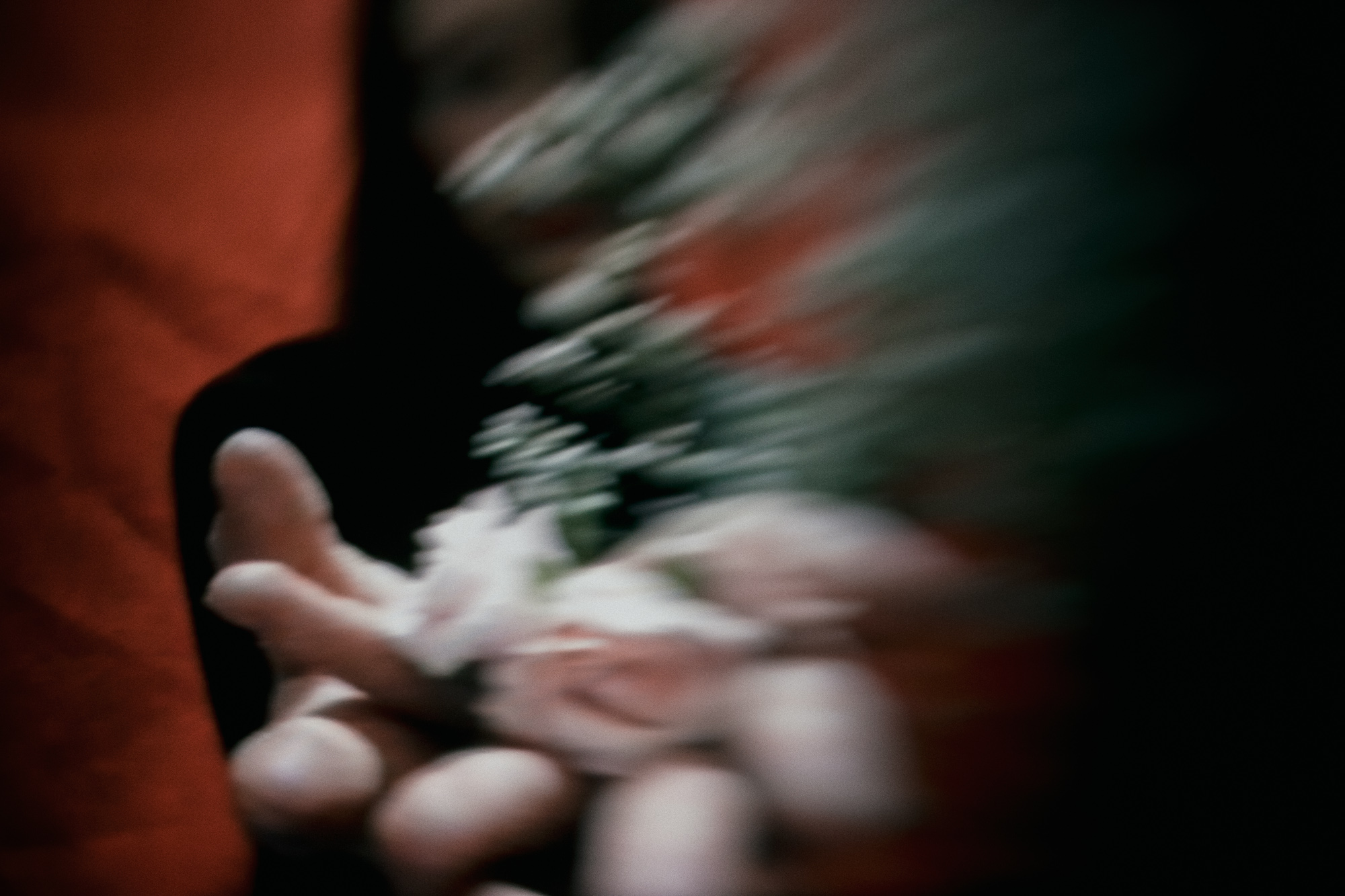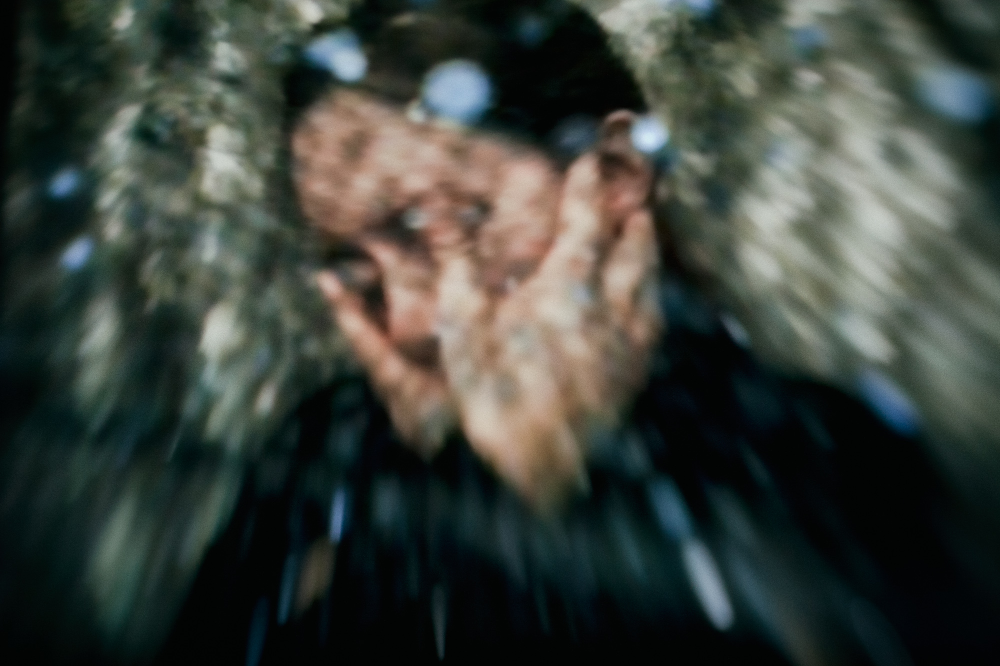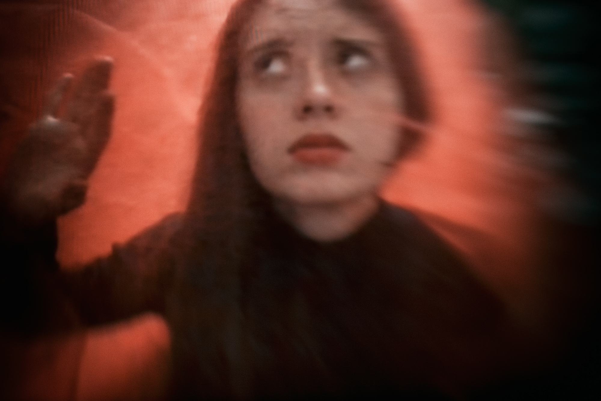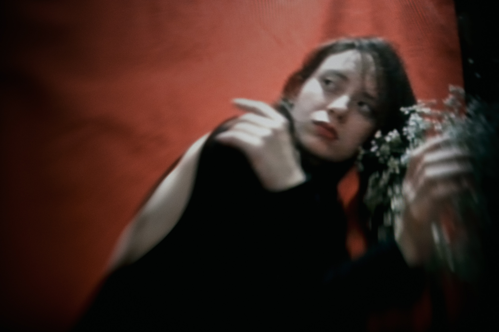 To outline the story: it is about a girl who is trapped at home having bizarre visions of herself. Nightmarish visions resulting from her isolation and born in the liminal space between being awake and asleep. I like the idea of the pictures being stills from a long-forgotten horror or mystery film. I like their expressive and ambiguous quality. The blurriness was created by me using a special lens while capturing the screen. Other effects came through her covering the webcam with semitransparent fabric. I was really surprised how well this worked out. It was a collaborative effort in the best sense.