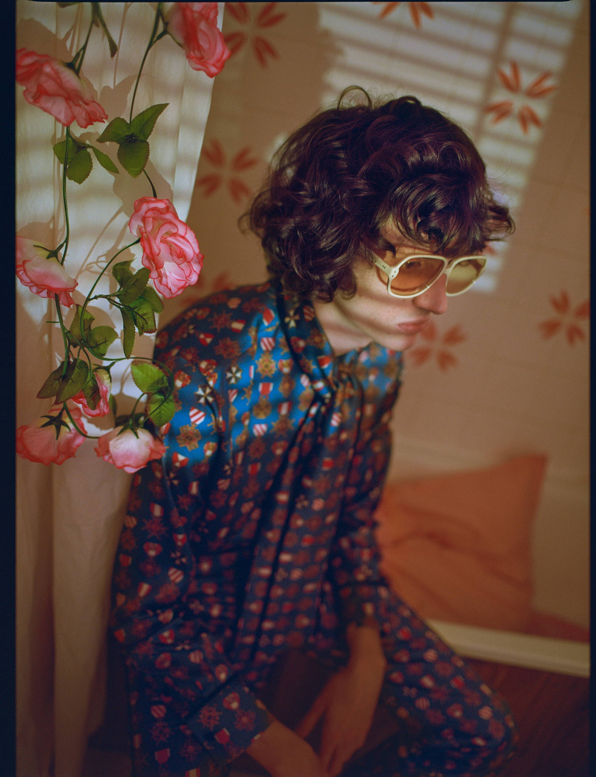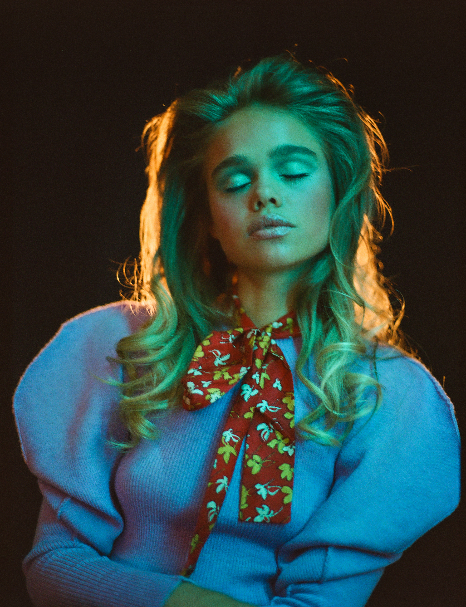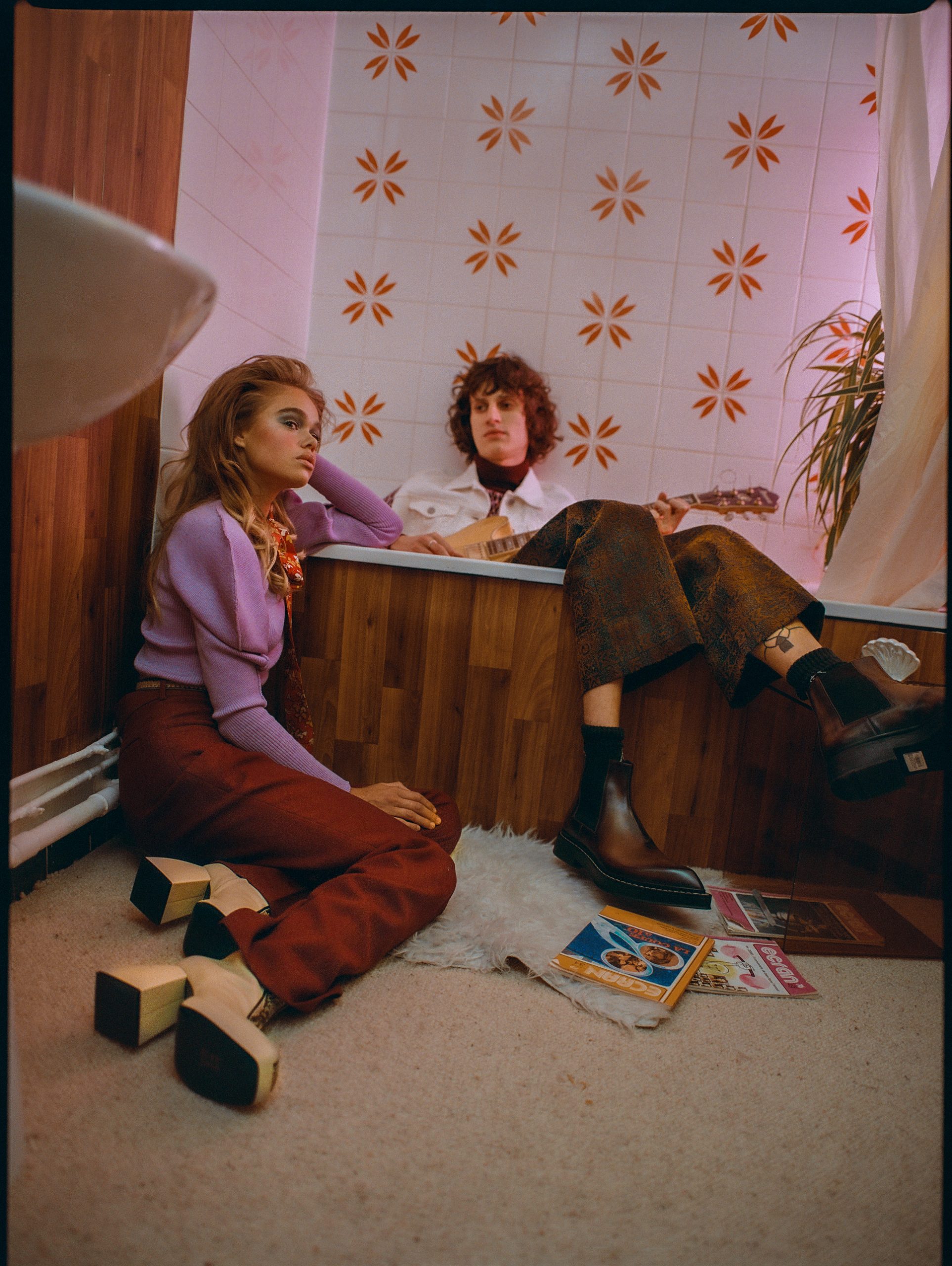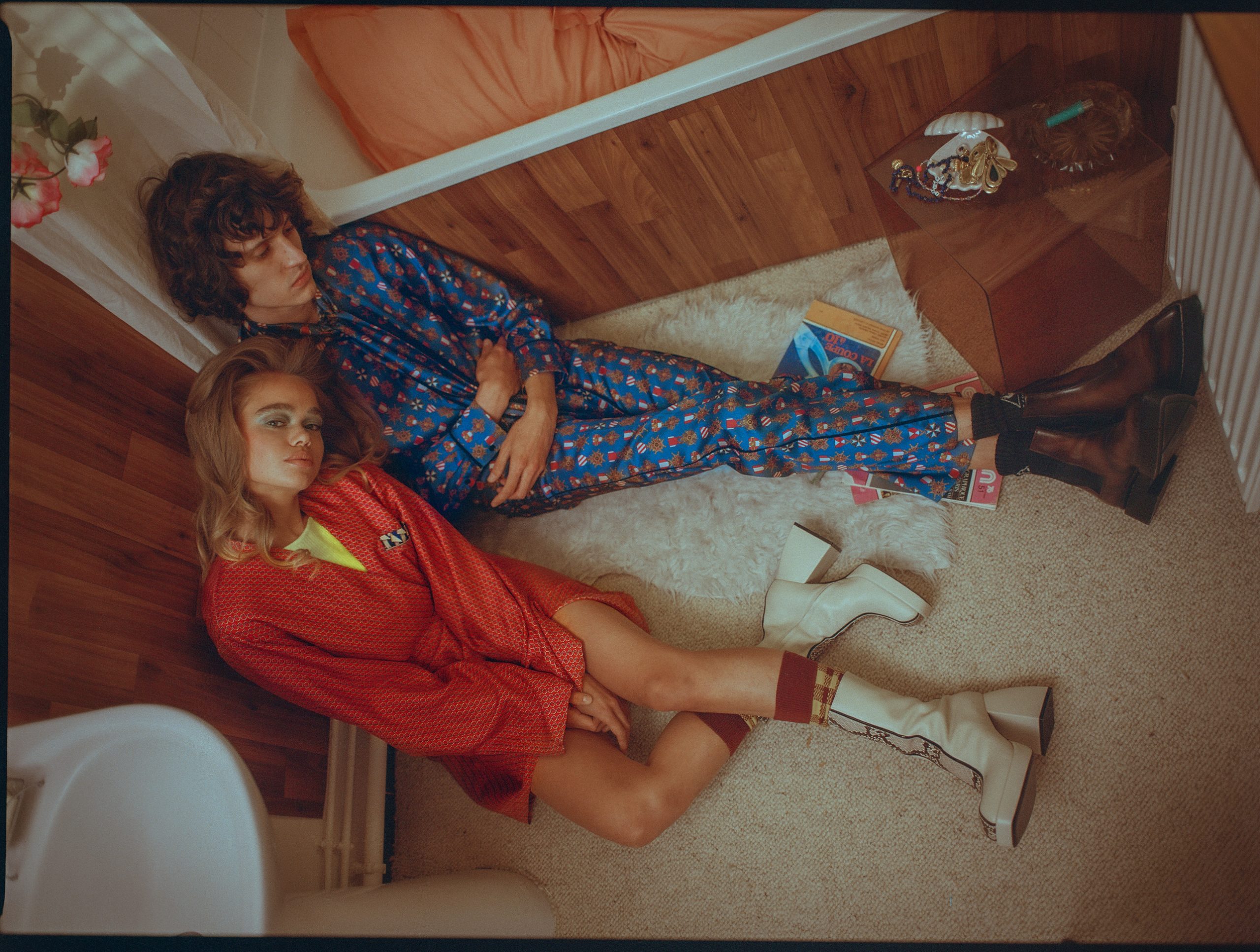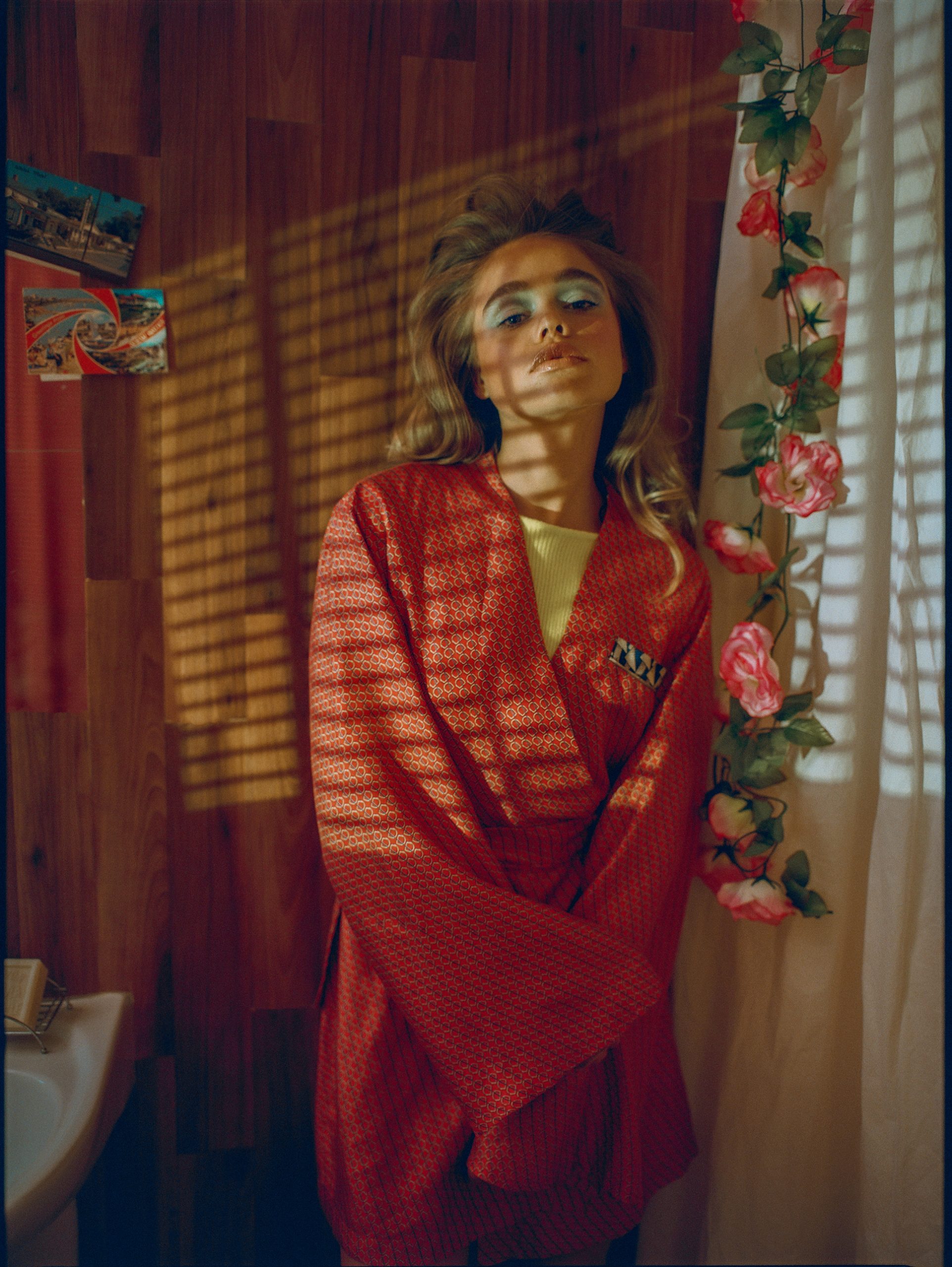 Maya wears : Metal sunglasses, Alexander McQueen Silk kimono, MOW Velvet jumper, Maison Kitsuné Wool socks, Lacoste Leather boots, Nodaleto