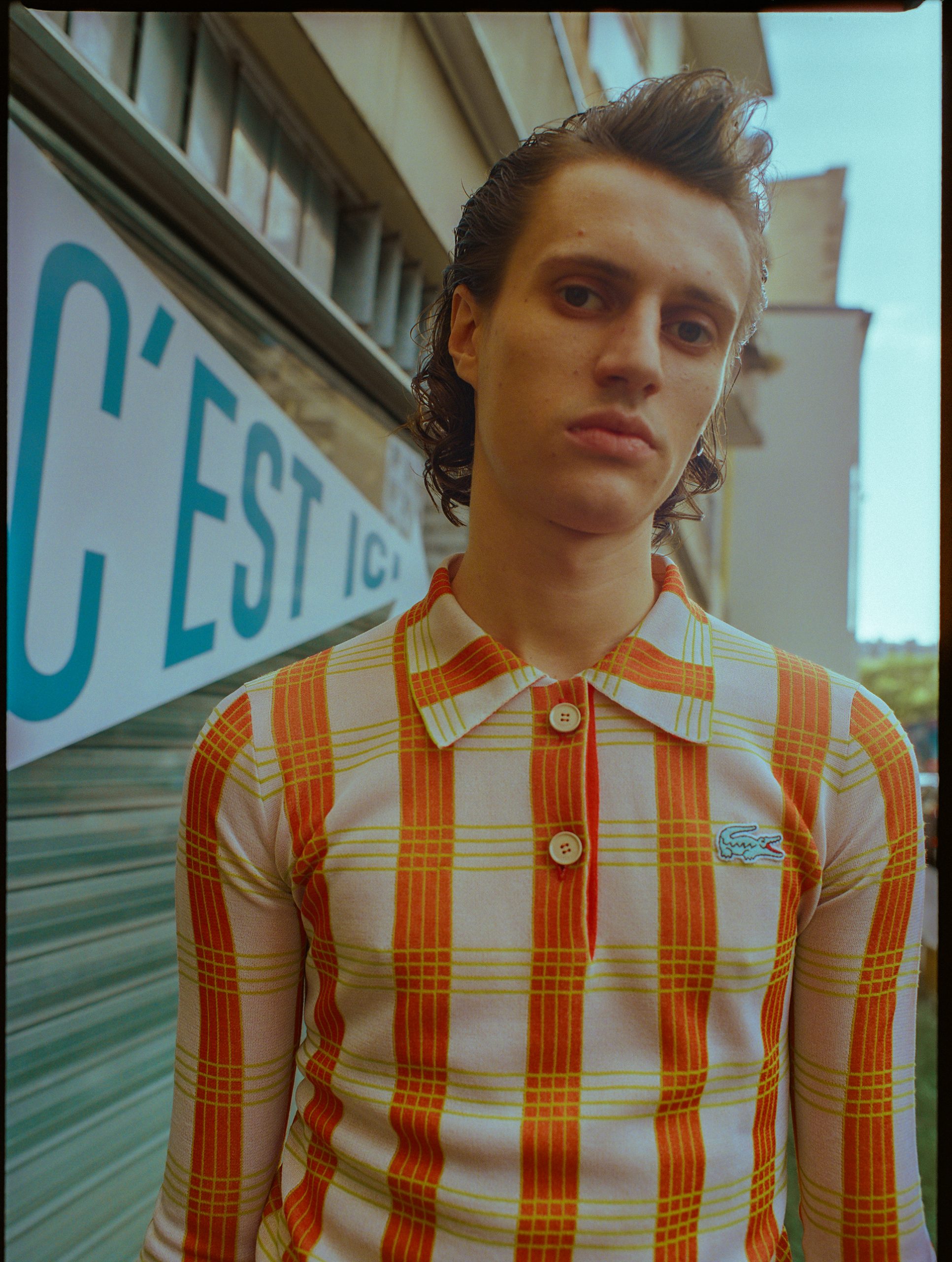 Elliott wears : Strass earring, Chabaux Cotton jacket, Lacoste Wool turtleneck, Lacoste Wool polo, Lacoste Leather trousers, MM6 Maison Margiela Leather boots, Berluti
