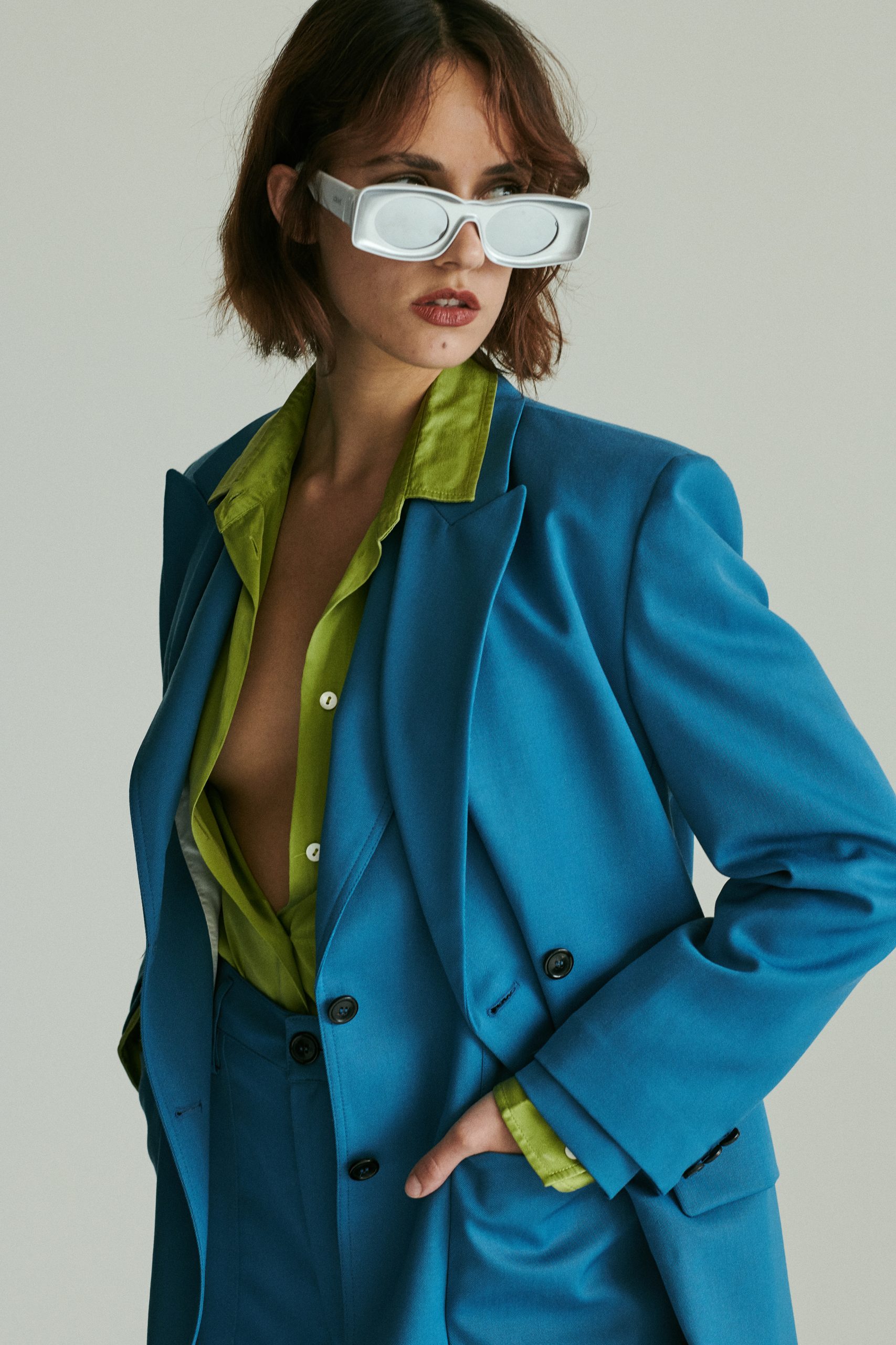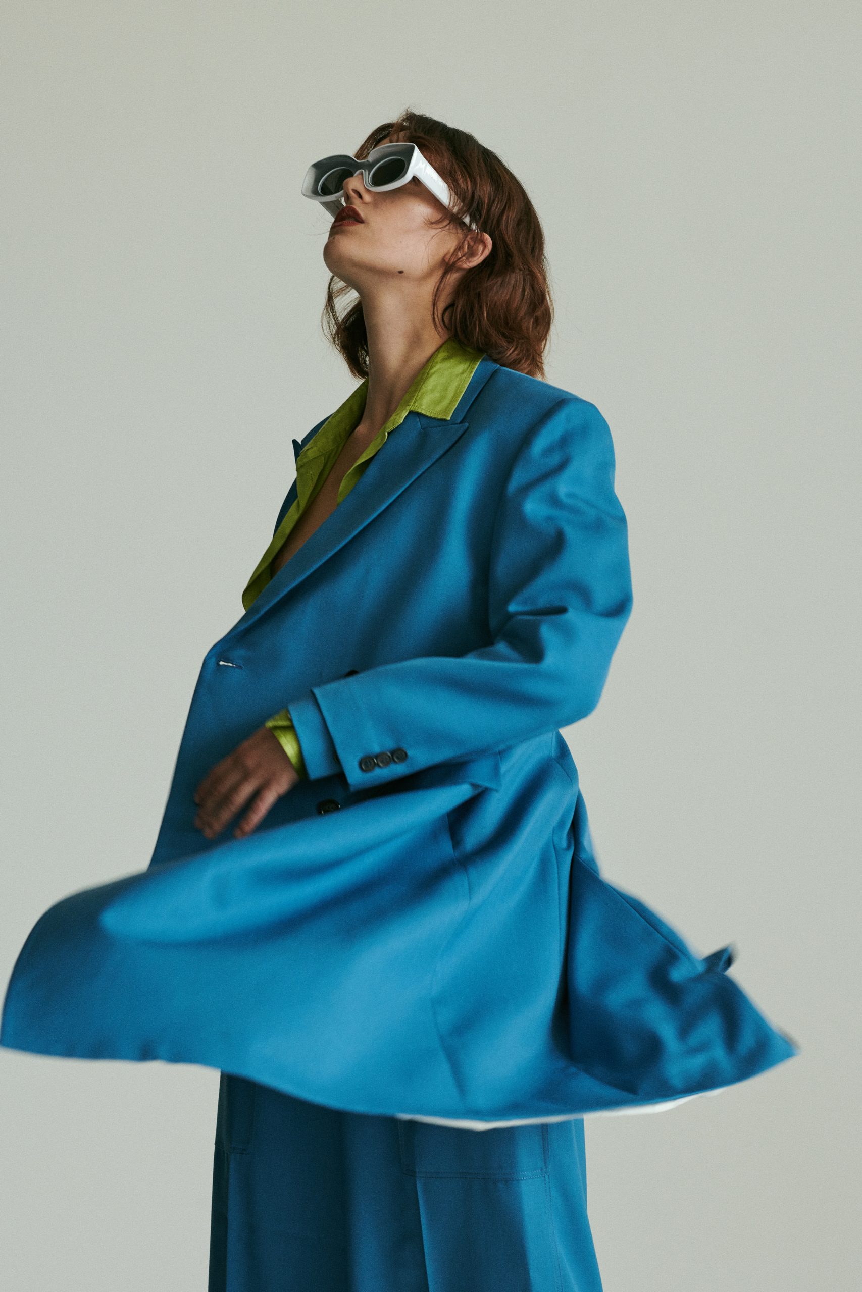 blazer : GRIFONI coat : GRIFONI trousers : GRIFONI shirt : DOLCE&GABBANA sunglasses : LOEWE