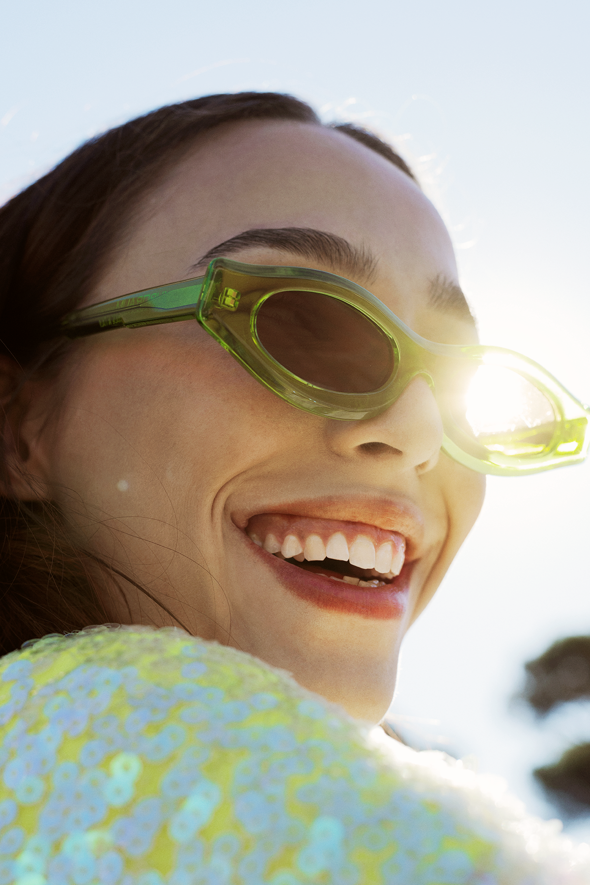 body stylist’s archive; paillettes top Zara ; sunglasses Kuboraum