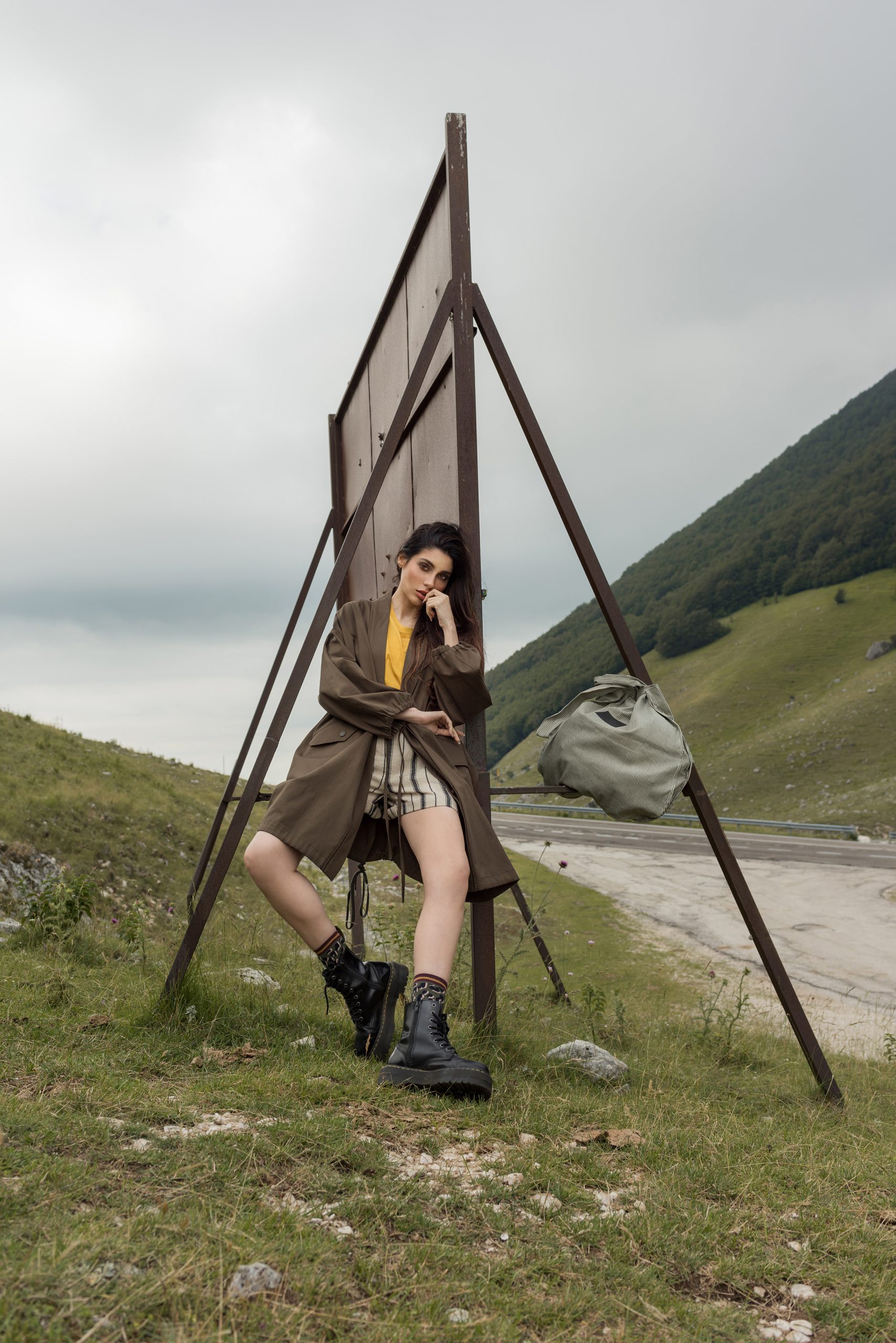 Jacket: Grifoni, shorts: Souvenir, t-shirt: Nowashmaschine, backpack: Nowashmaschine, boots: dr. Martens