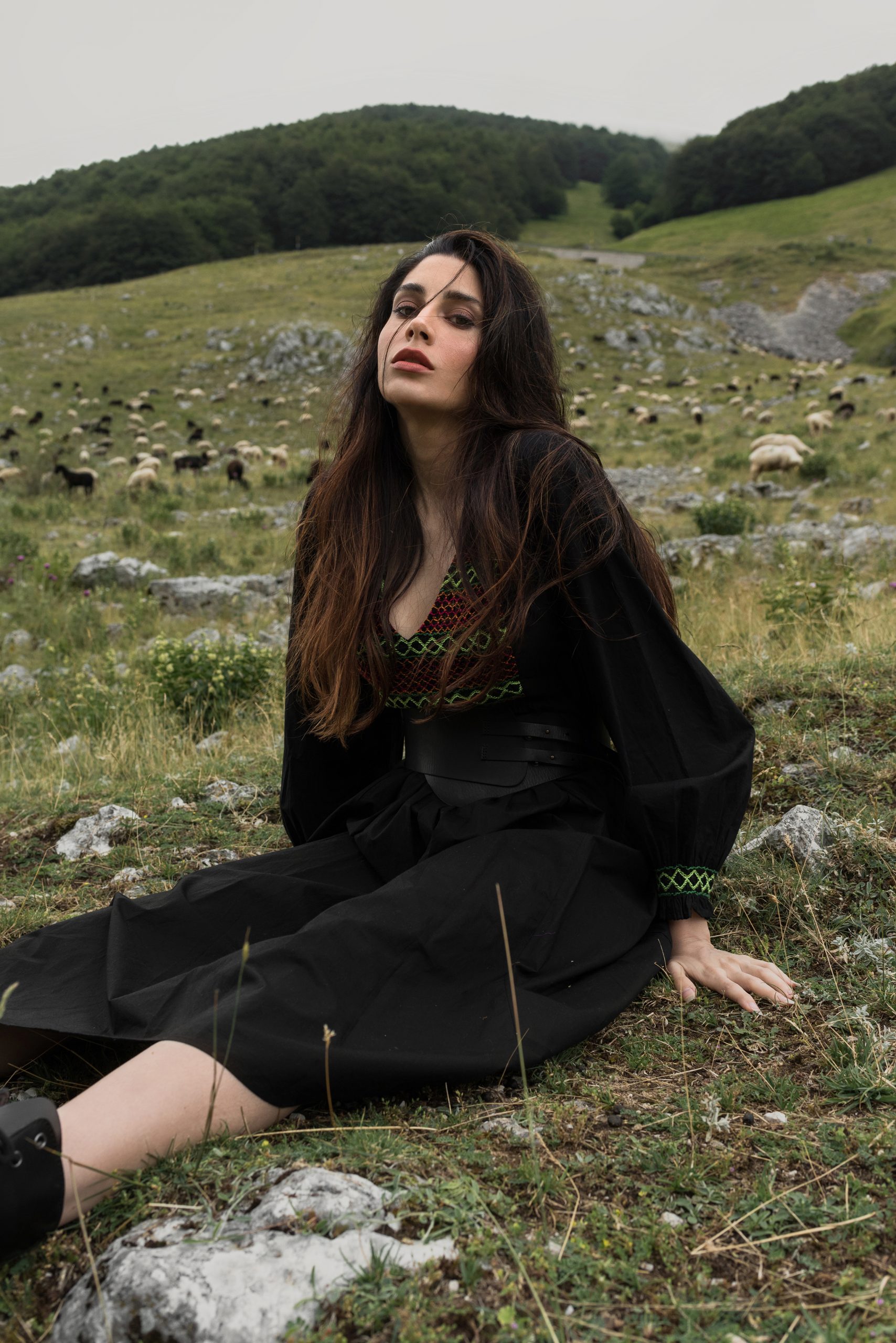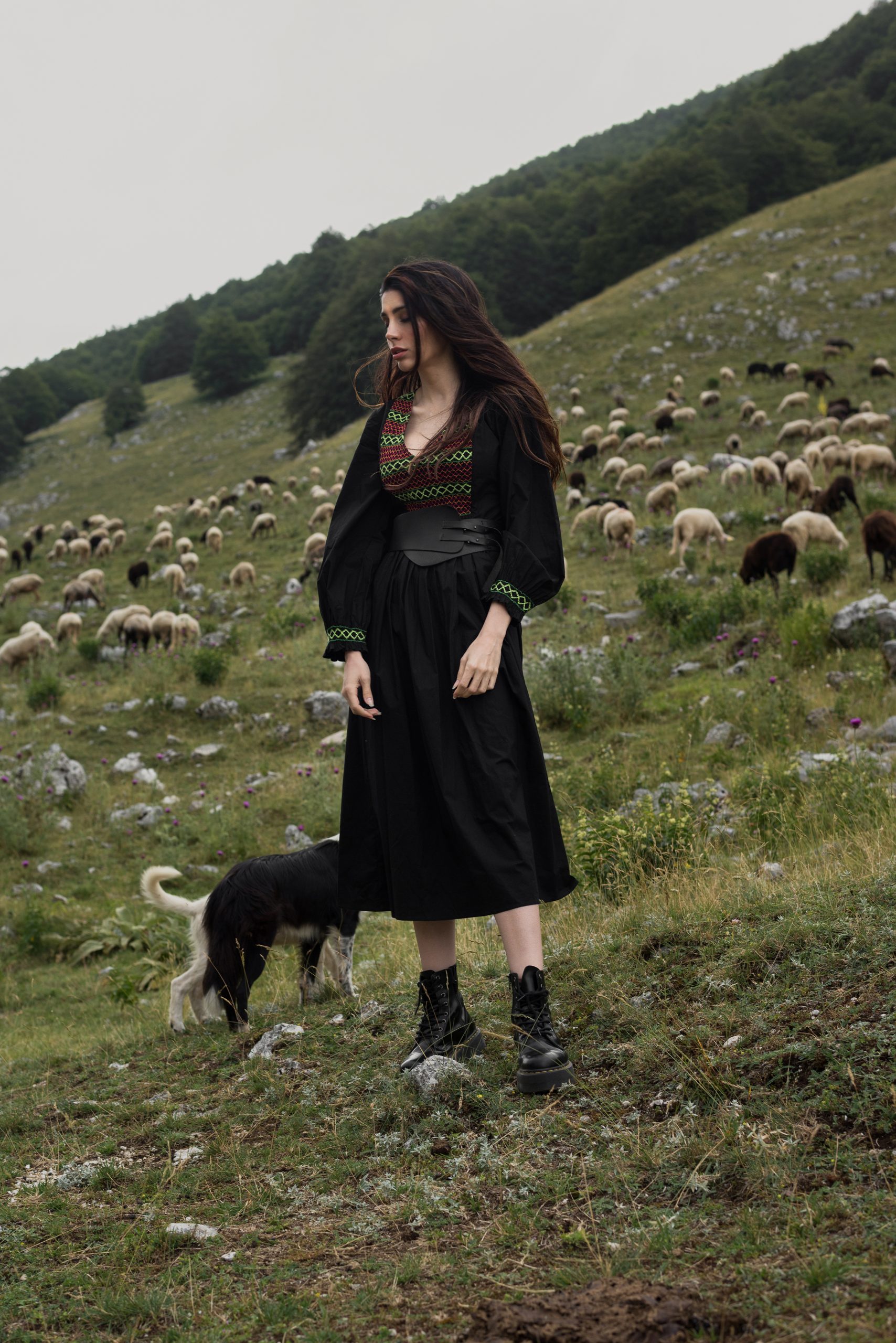 midi dress: Attic and Barn, belt: forteforte, boots: dr. Martens