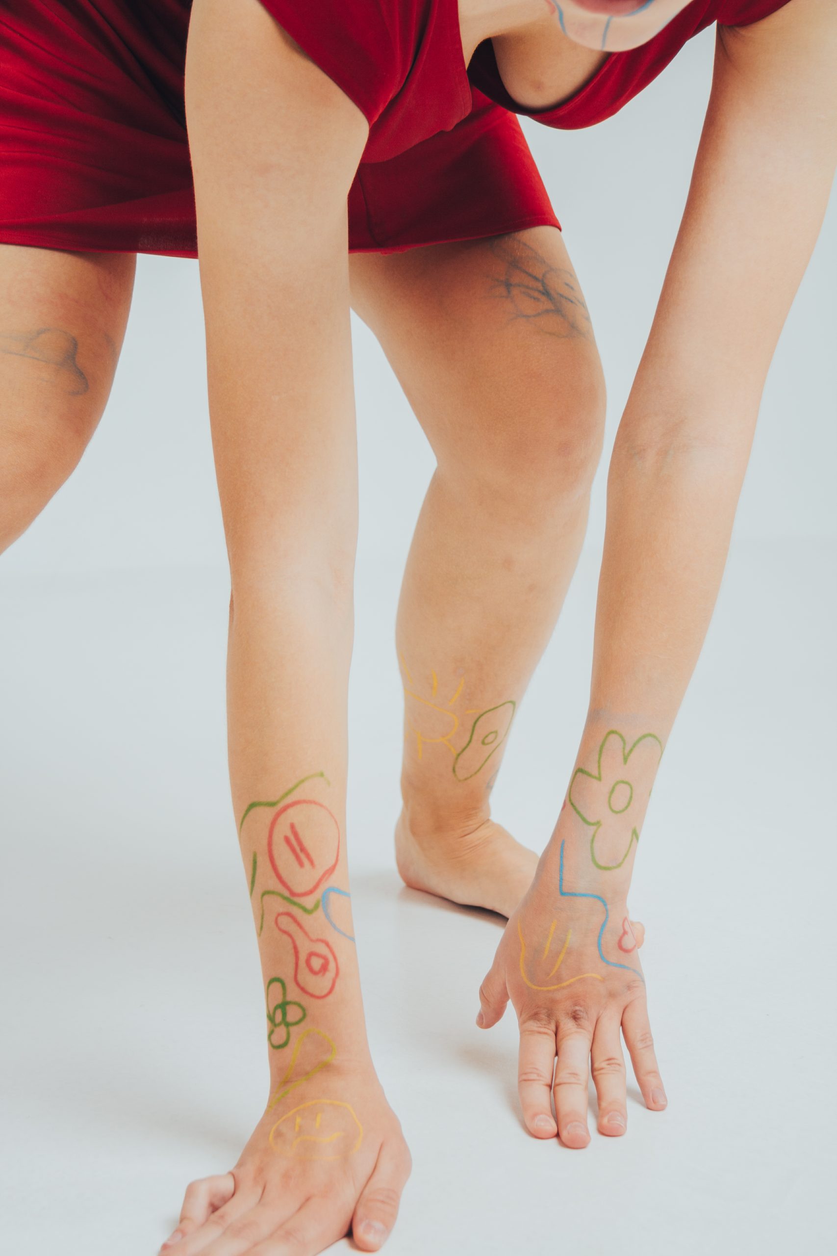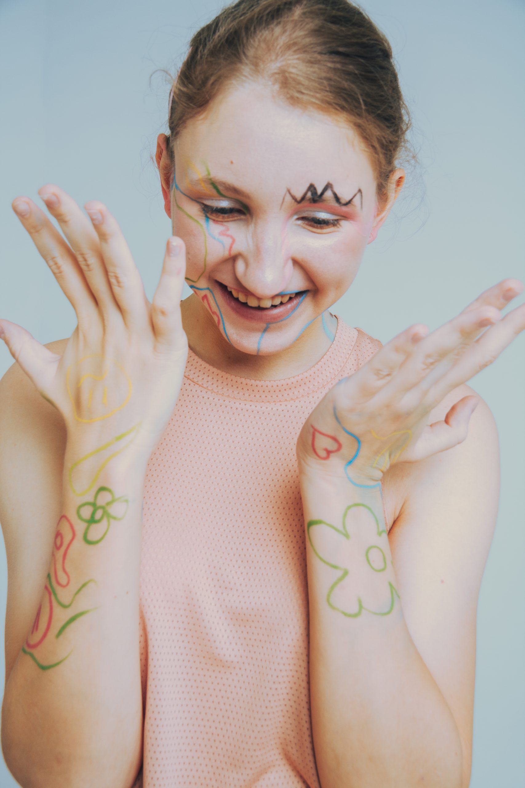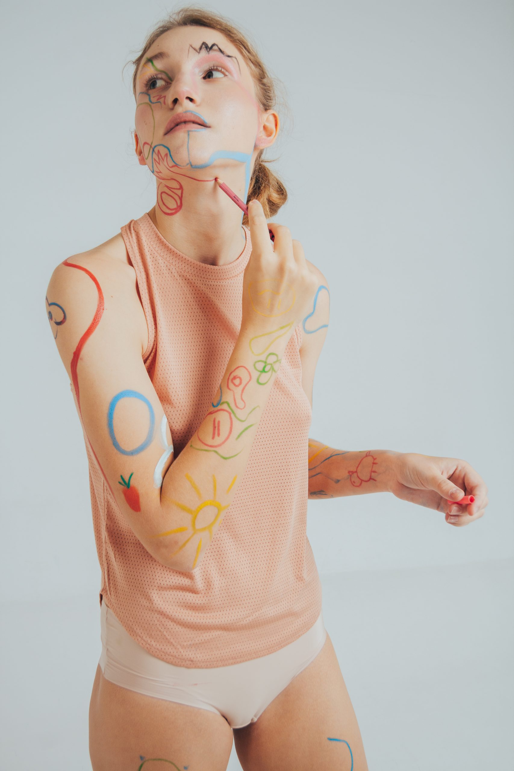 Paint yourself with crayons,
