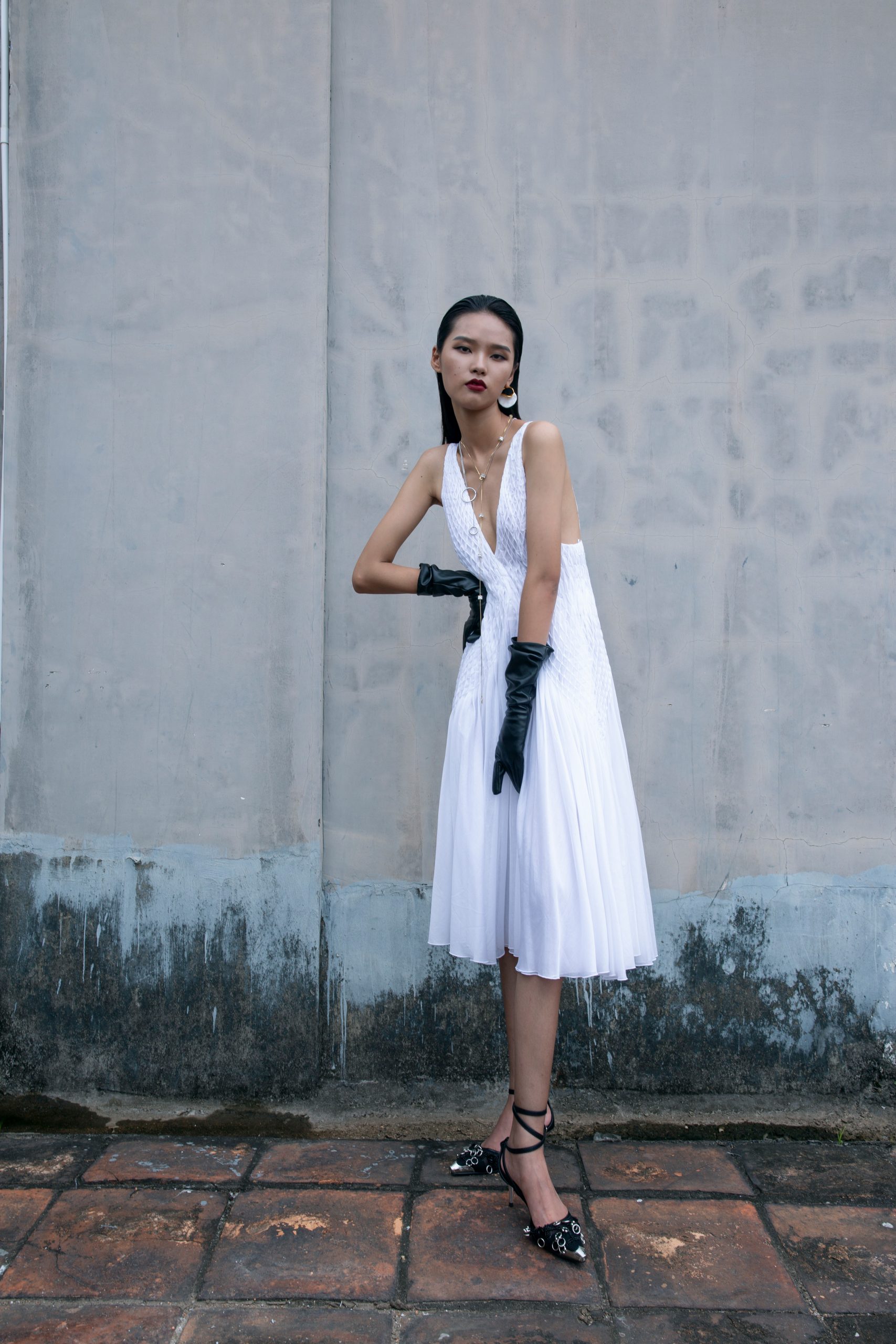 earring, Celine; Dress, ermanno scervino; Shoes, alexander wang