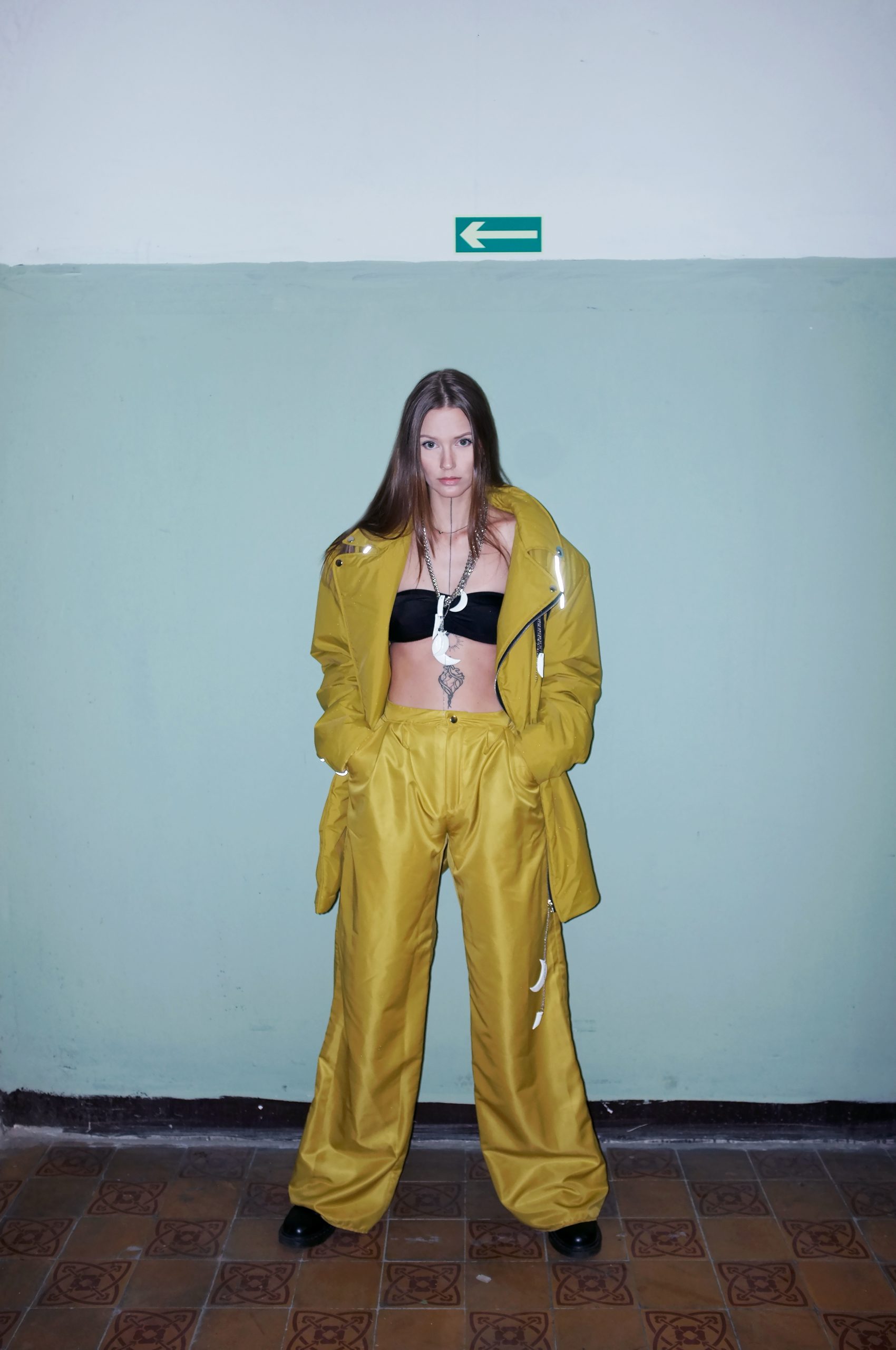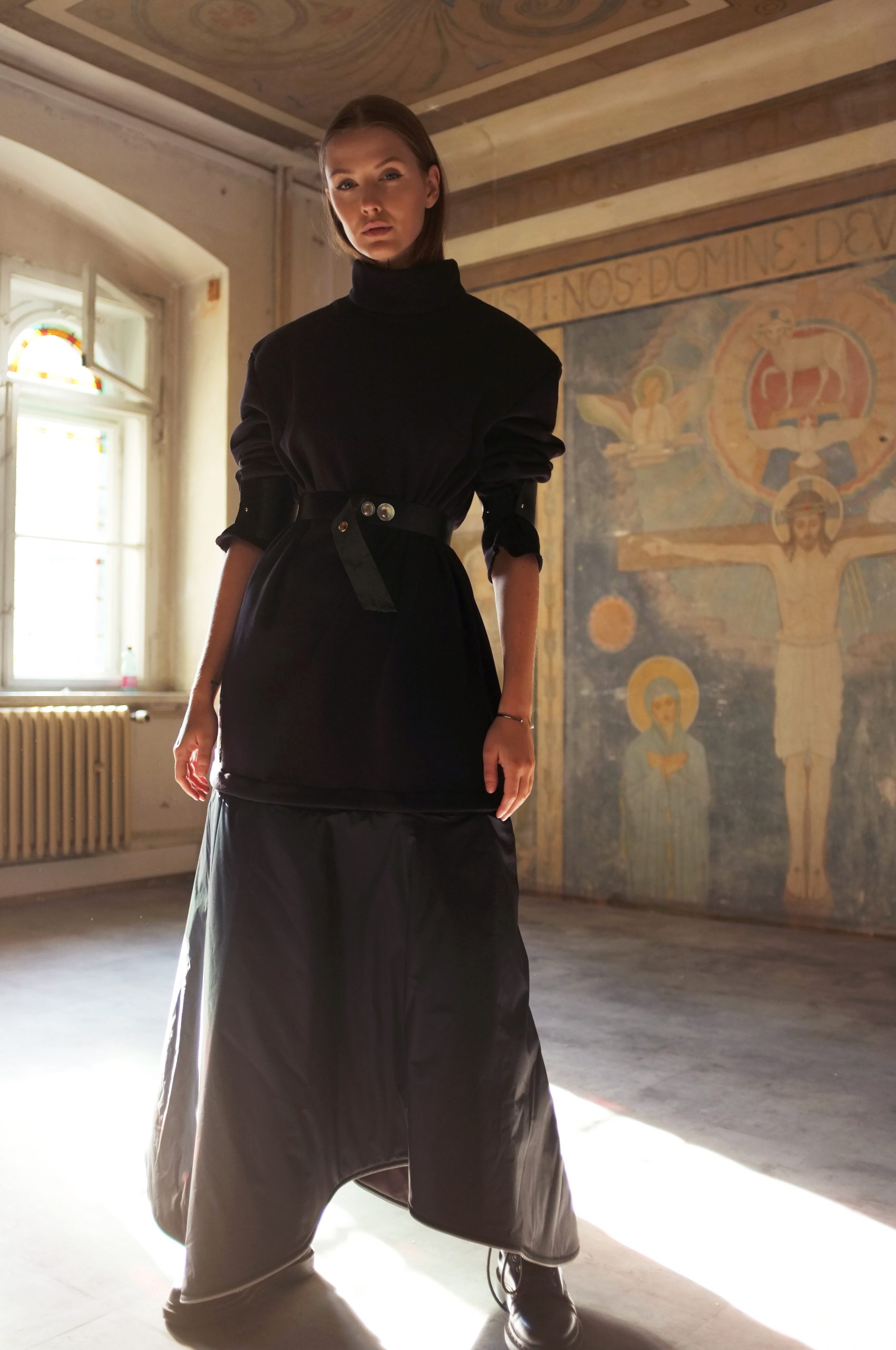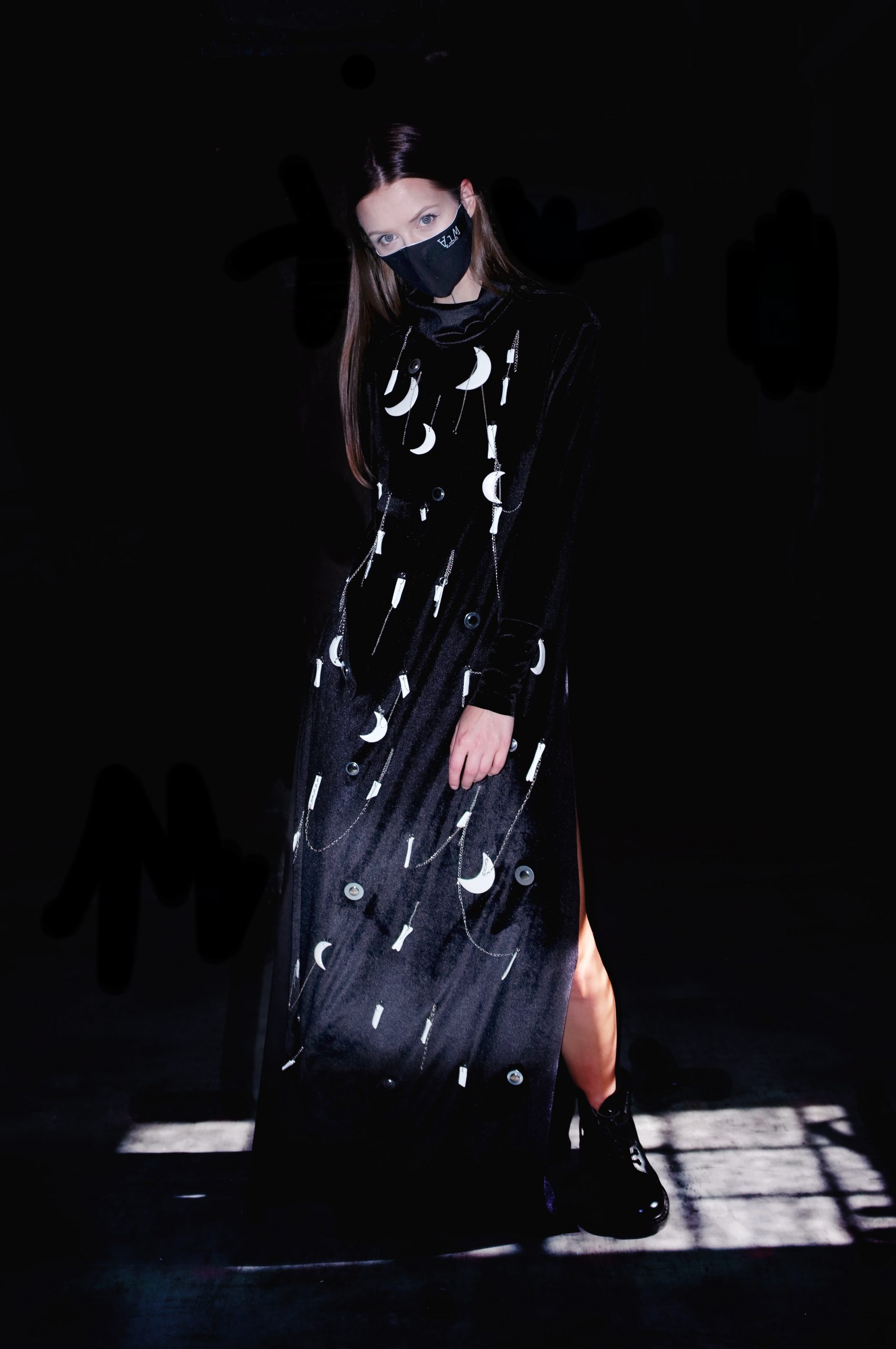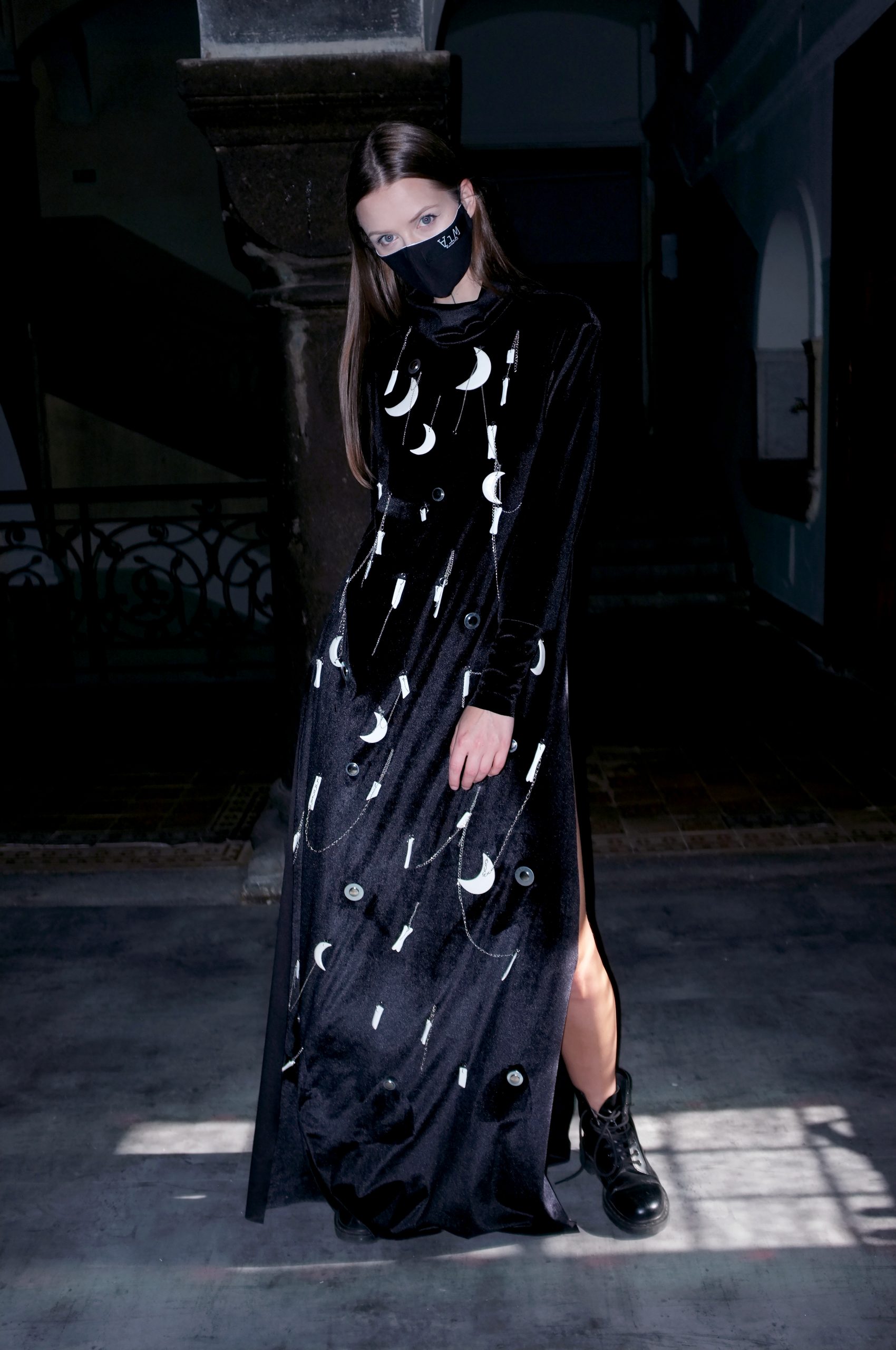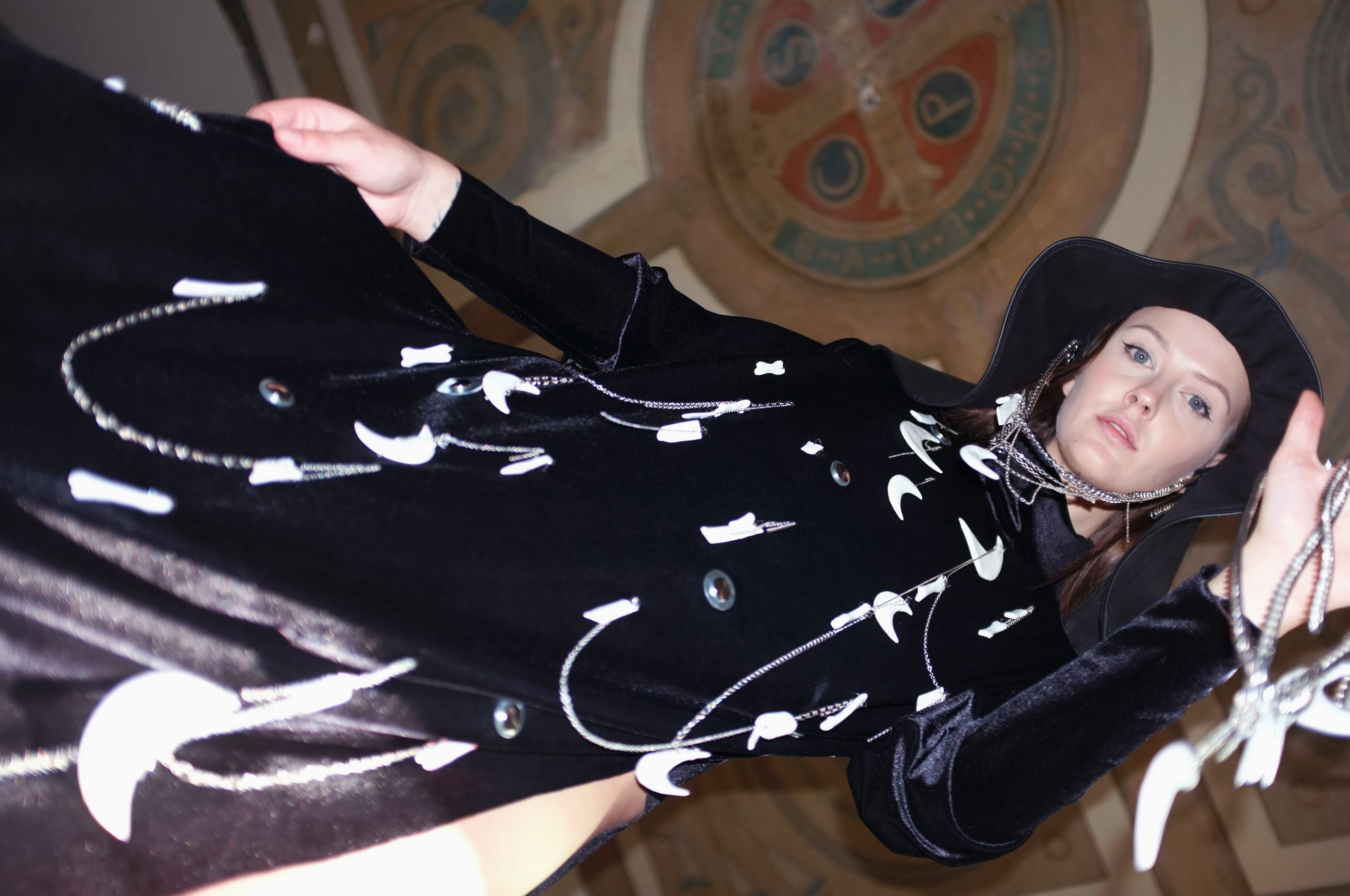 “Witches, women whom men were afraid of because they were not afraid to be themselves, they were not afraid to be non-standard, unrestrained by time. Femme fatale, women who are incomprehensible and incredibly captivating in their appearance, as if they had supernatural abilities.They have an aura of mystery, unfetteredness, inner strength and attraction around them. Free mind, rebellion and crook, as well as the broad shoulders of the 80’s as a manifestation of female emancipation and strength. BURN THE WITCH!”