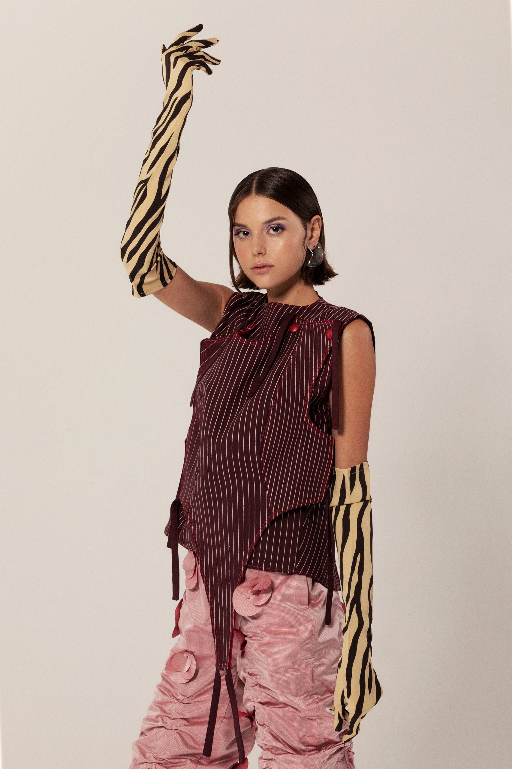 Top: Alvaro Mars; Gloves: Gucci; Trouser: Alicia Torres; Earring: kiwipomelo