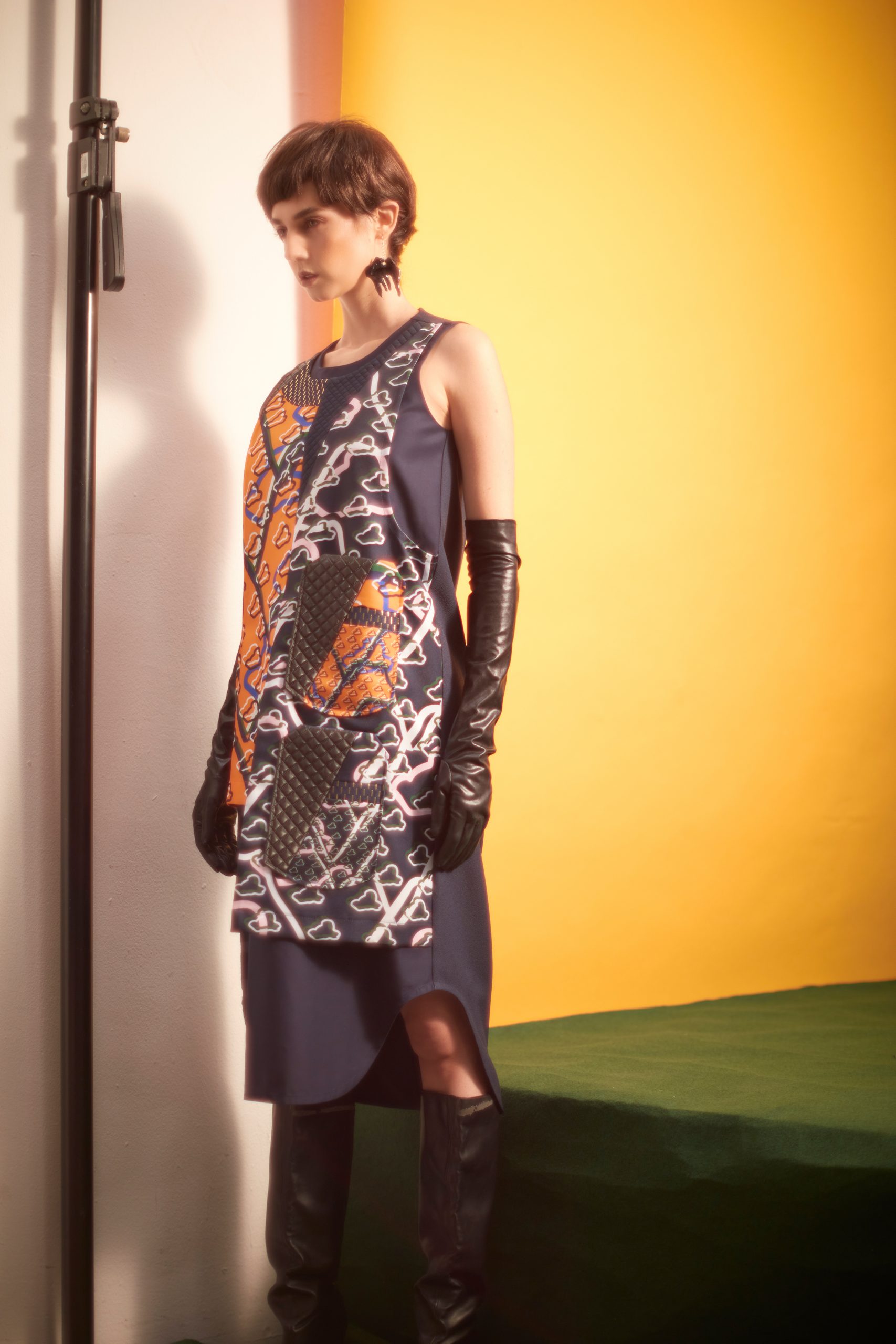 Tracks midi dress, Cassey Gan (@casseygan), earring, Bremen Wong (@bremenwongaccessory), boots, Celine (@celine), gloves, stylist’s own.