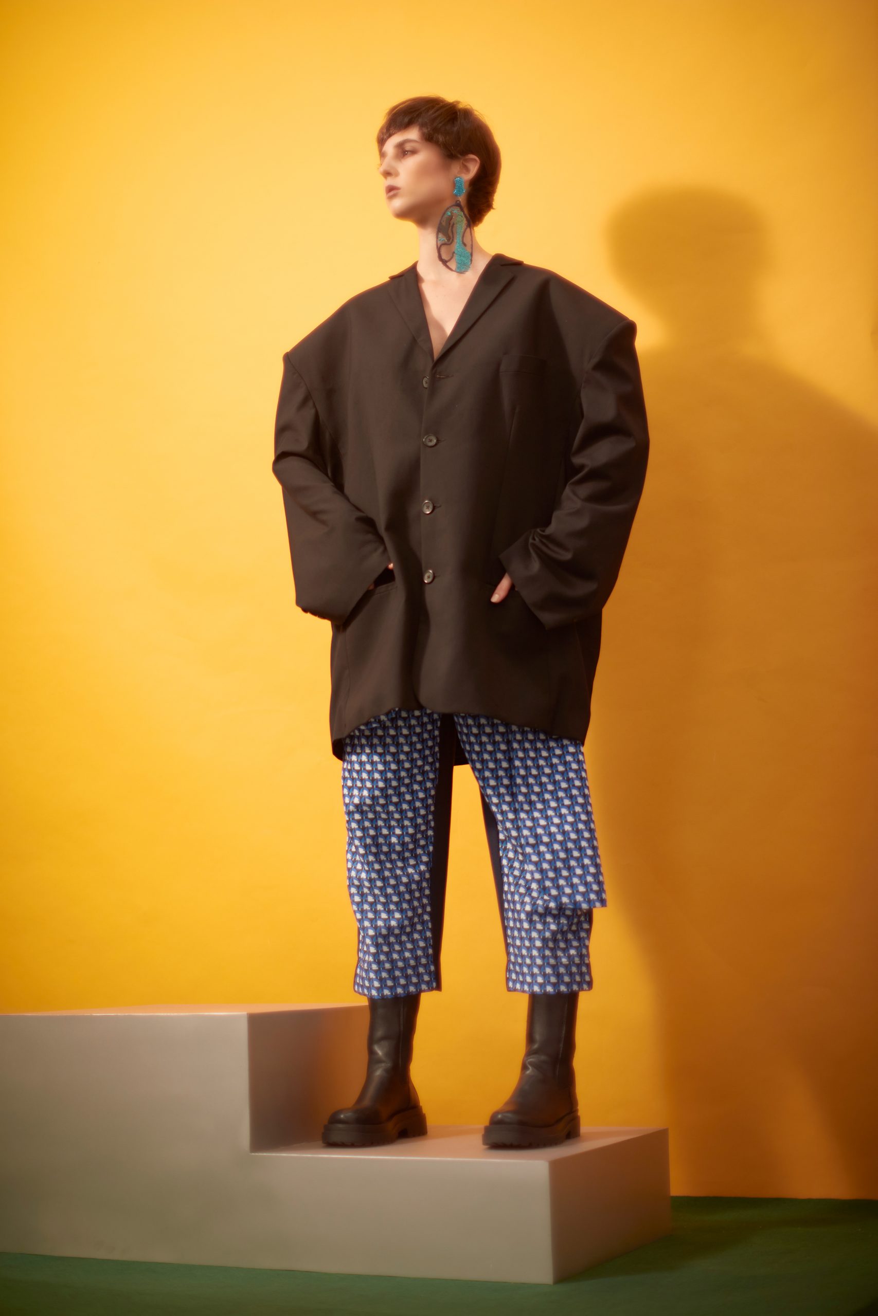 T.A.R blazer, Behati (@behati.my), diving trousers, Cassey Gan (@casseygan), earring, Bremen Wong (@bremenwongaccessory), boots, Chia Cindy (@_____cindyxx)