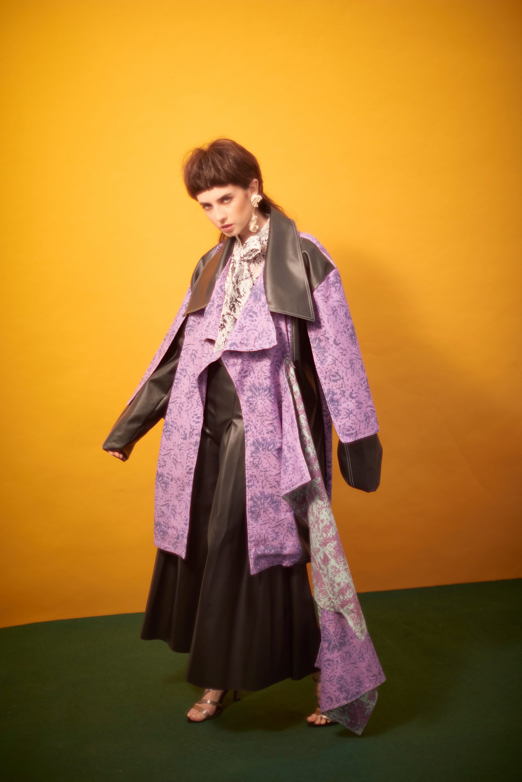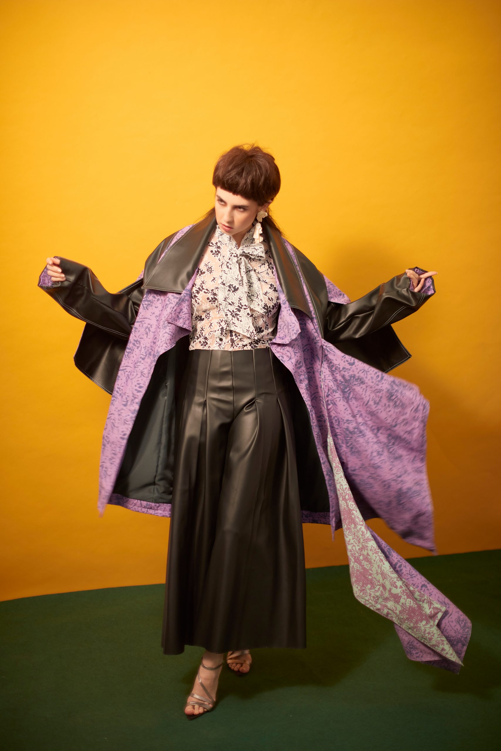 Top and jacket, both Masyadi Mansoor (@masyadimansoor), leather pants, Chia Cindy (@_____cindyxx), heels, Rhea Tan (@rheatandesign), earring, Bremen Wong, (@bremenwongaccessory)