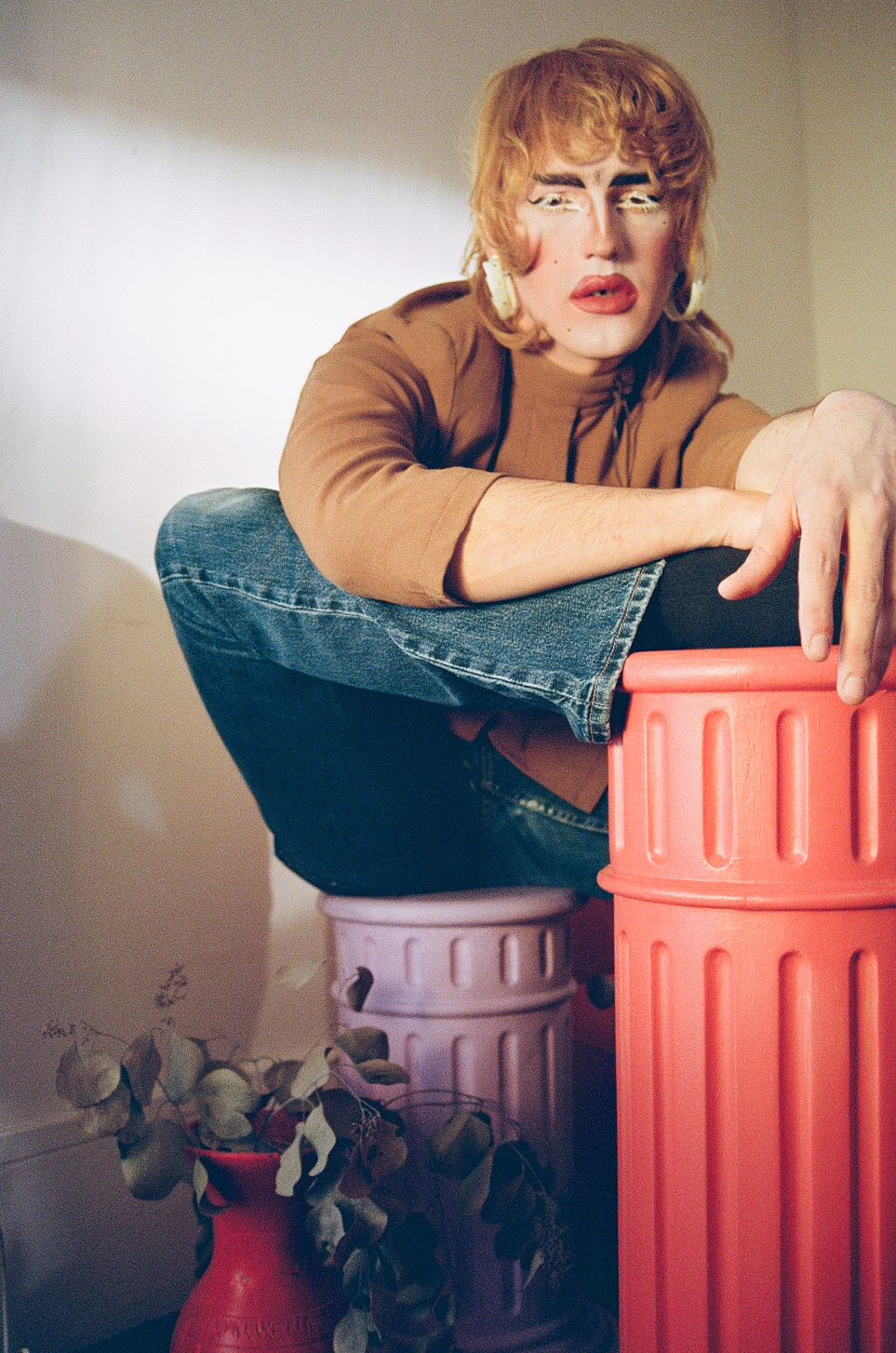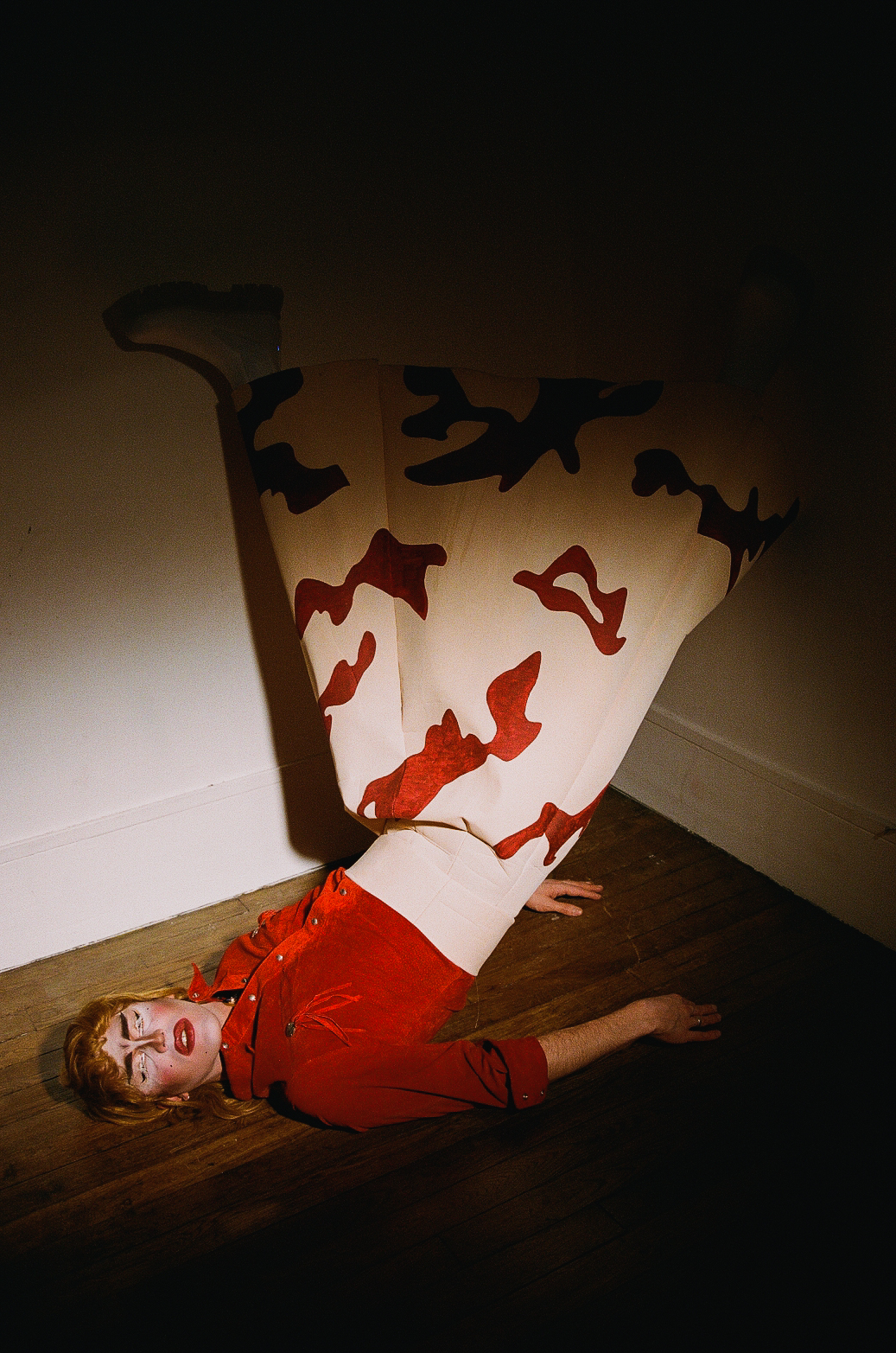 suit : Leandro Cano | pants worn as sleeves : Spleen Factory earrings : Berke Gold
