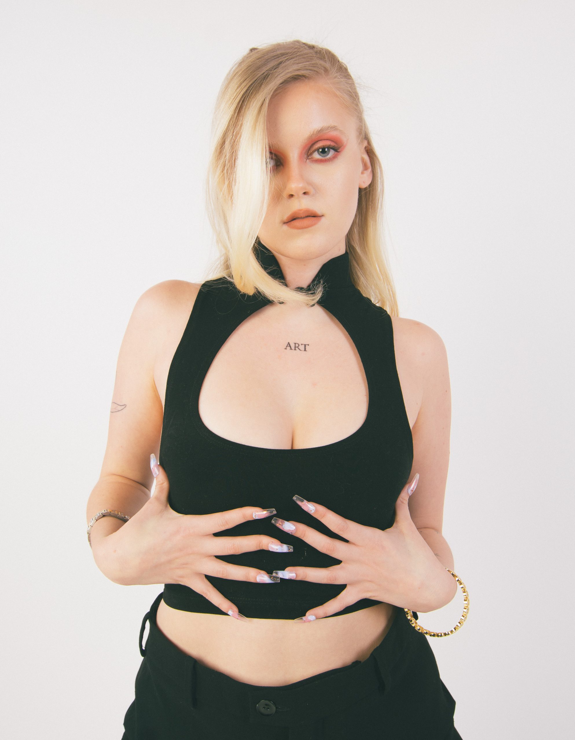 Top: Versace Jeans Couture Underwear: Dolls Kill Pants: I’m Sorry by Petra Collins Shoes: AllSaints Bag: Telfar