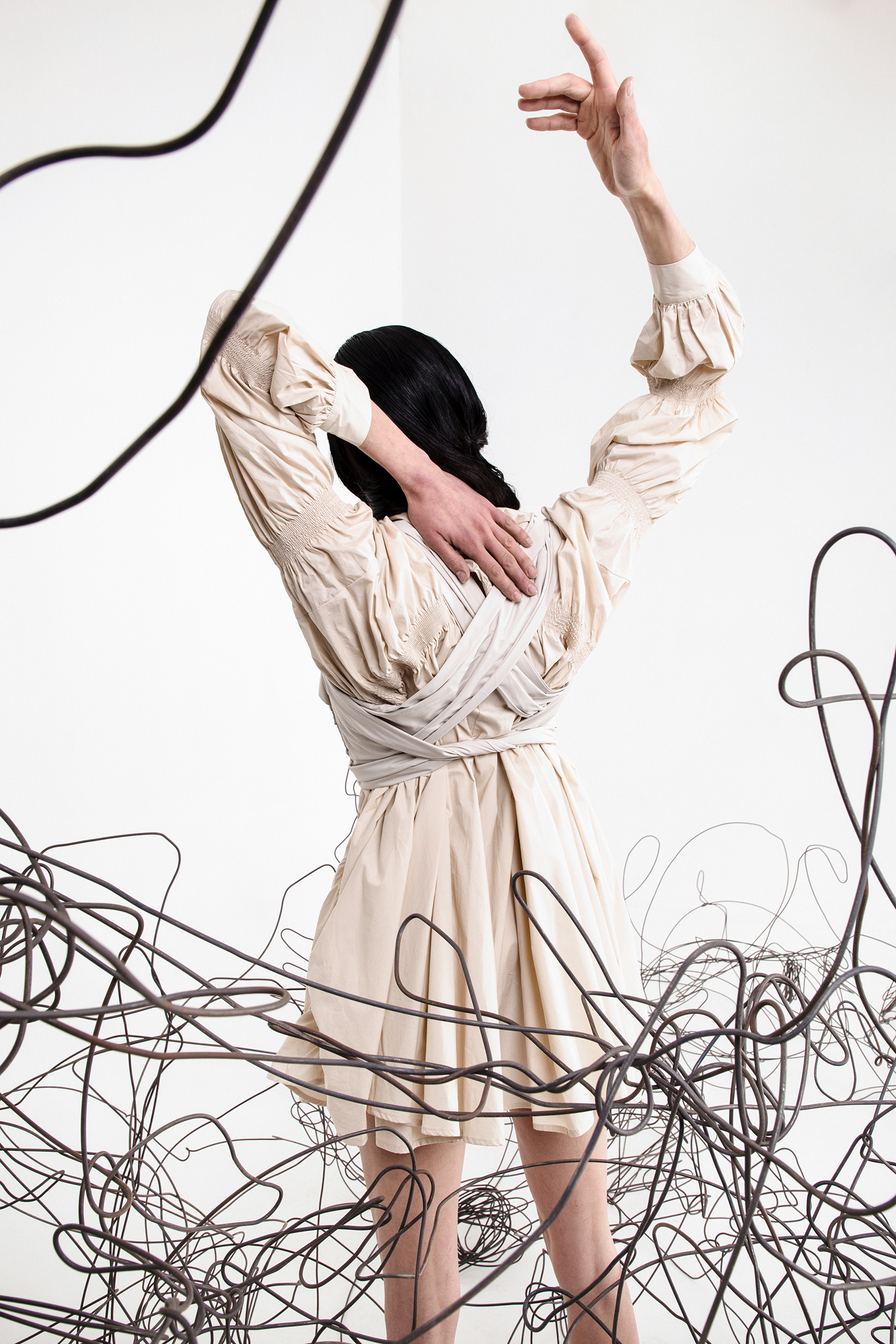 “Scriptophobia” a photoshoot with my iron installation in the studio, inspired from a phobia who generates terrible anxiety, reflecting the stress and suffering of this historic moment for each individual. It is a collaboration with SuperOdra store in Rome.