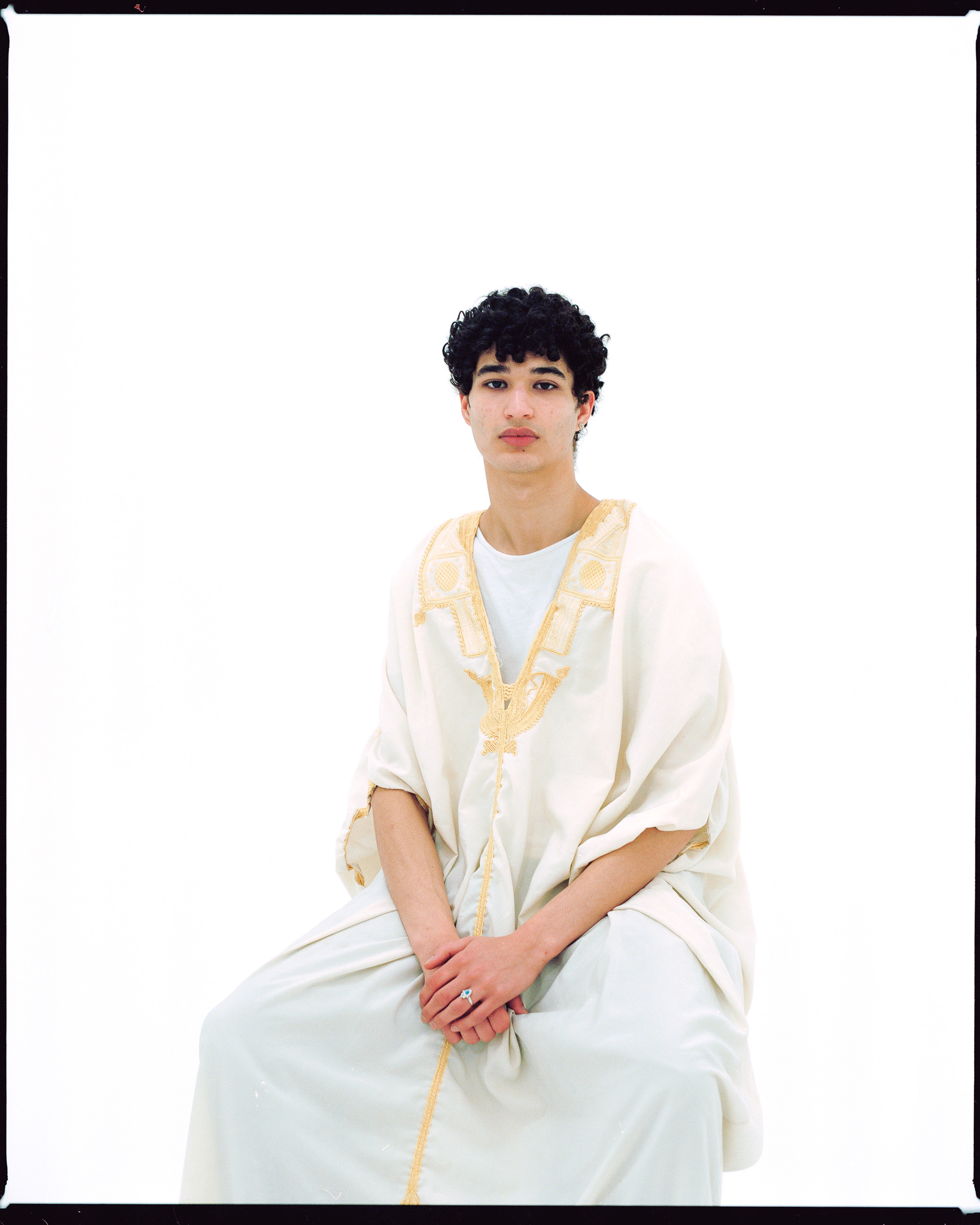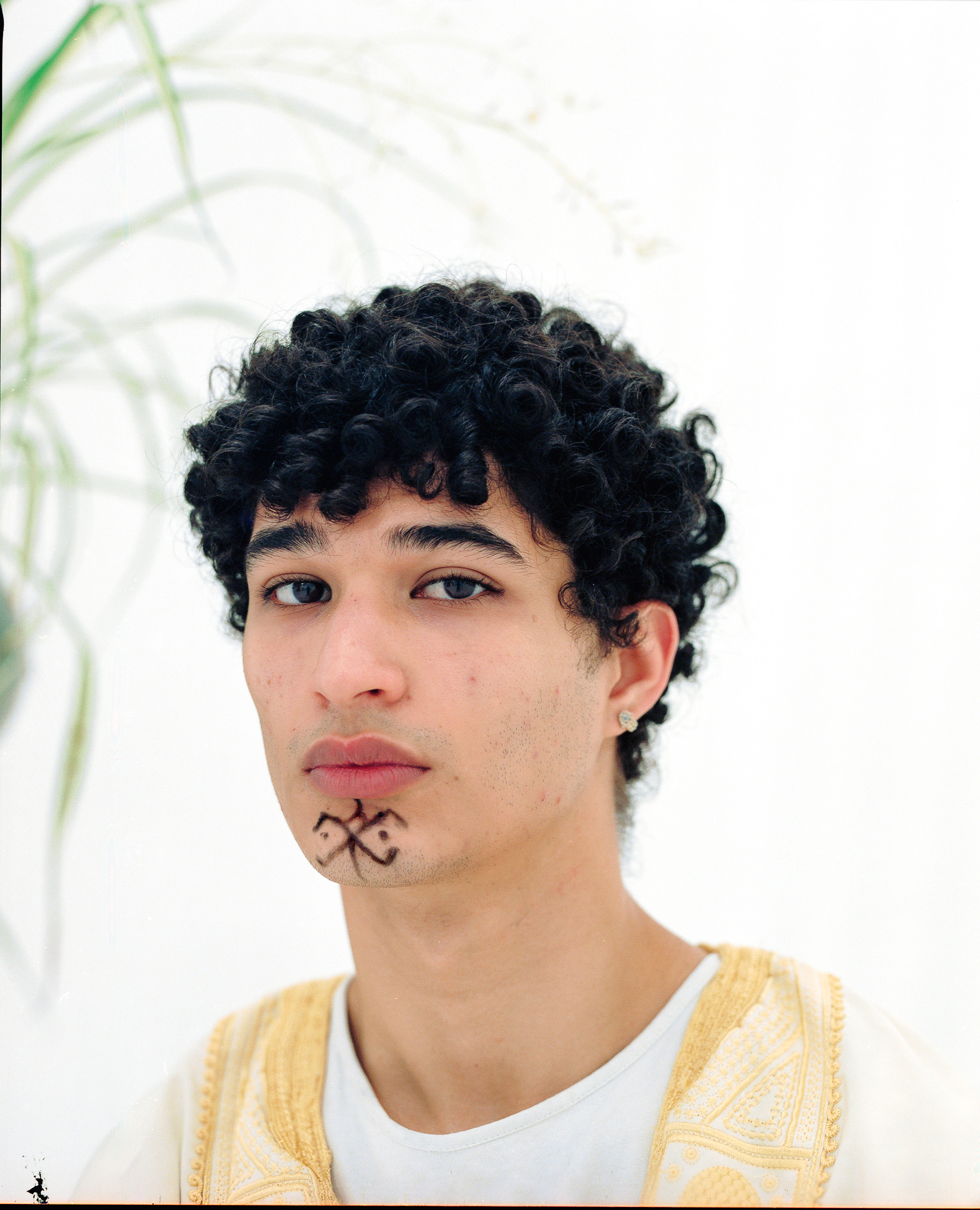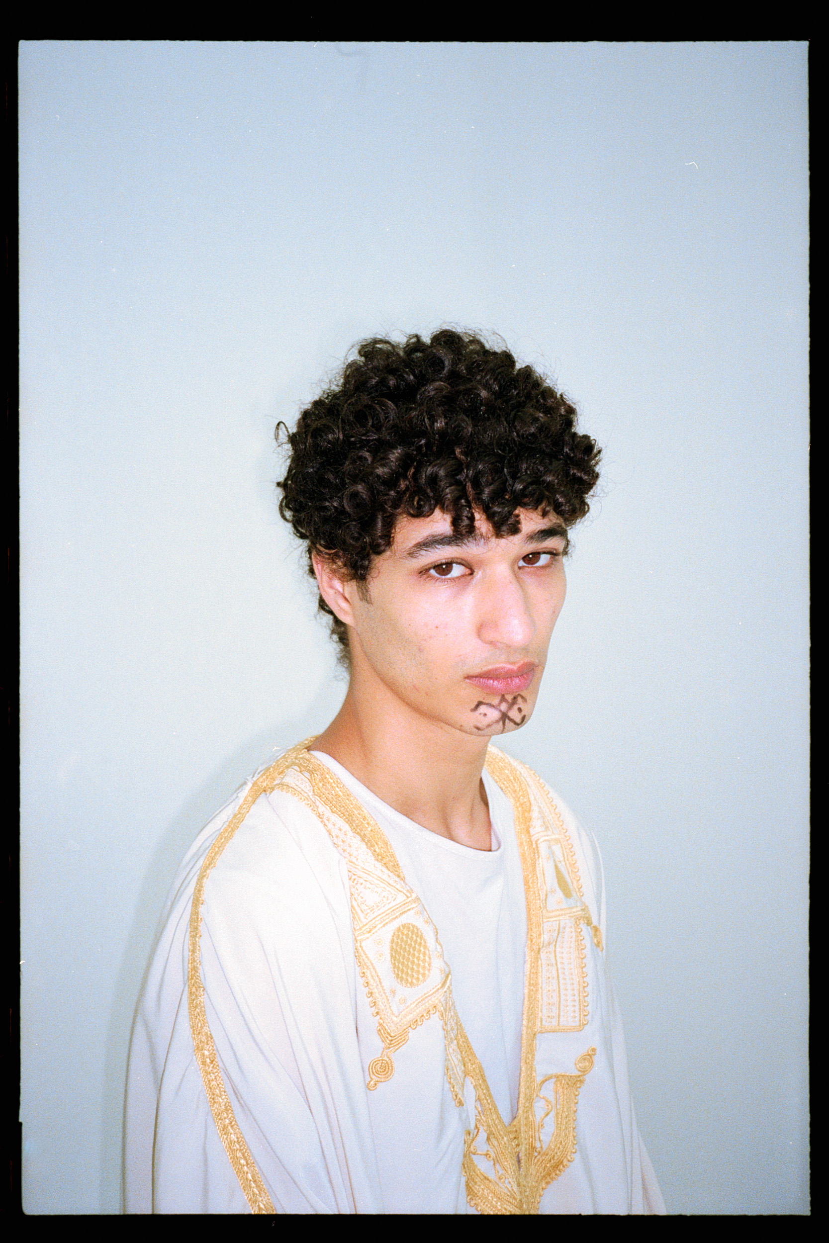 Shot in a studio in Brighton, photographer Benjamin Brooks wanted to shoot Adam wearing traditional Berber (native Algerian) clothing and make up as well as some conventional fashion. This adds to this set of portraits’ dimension.