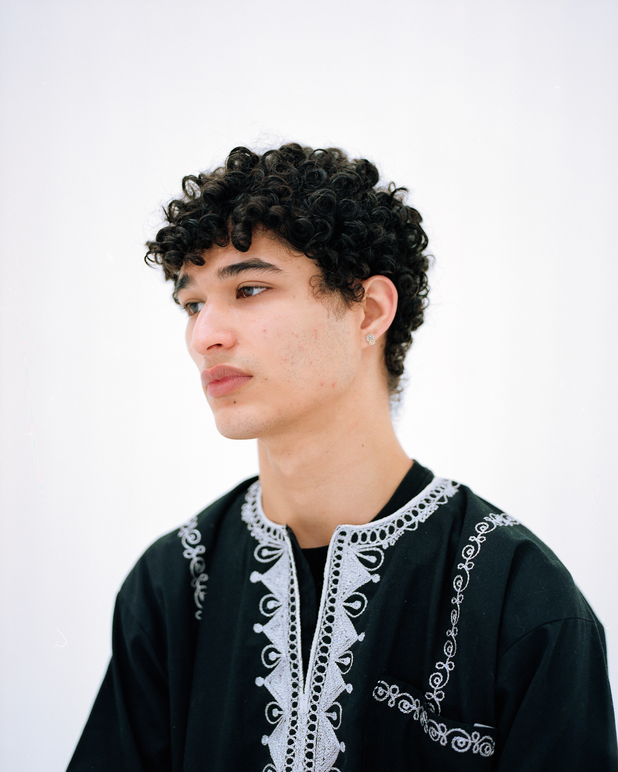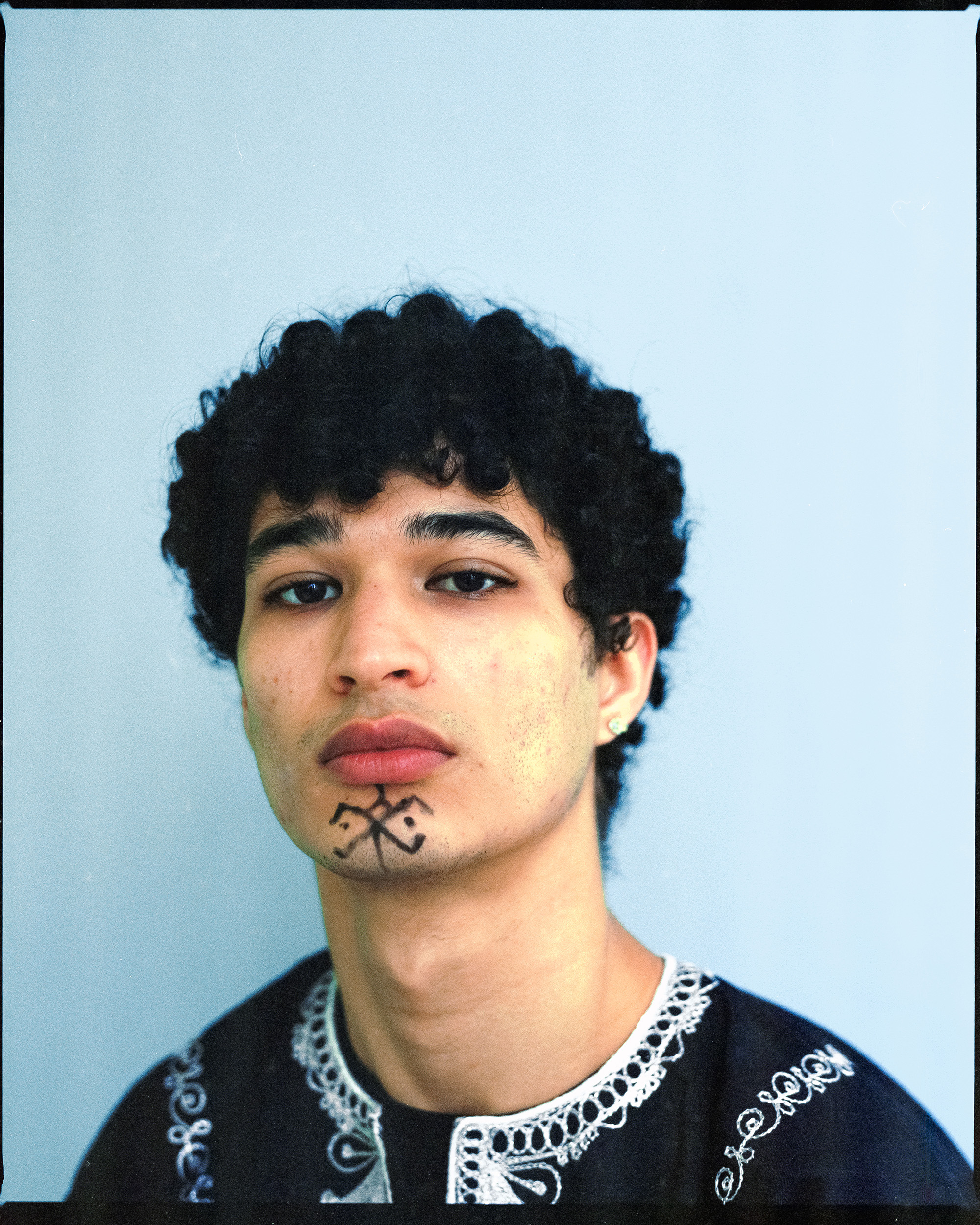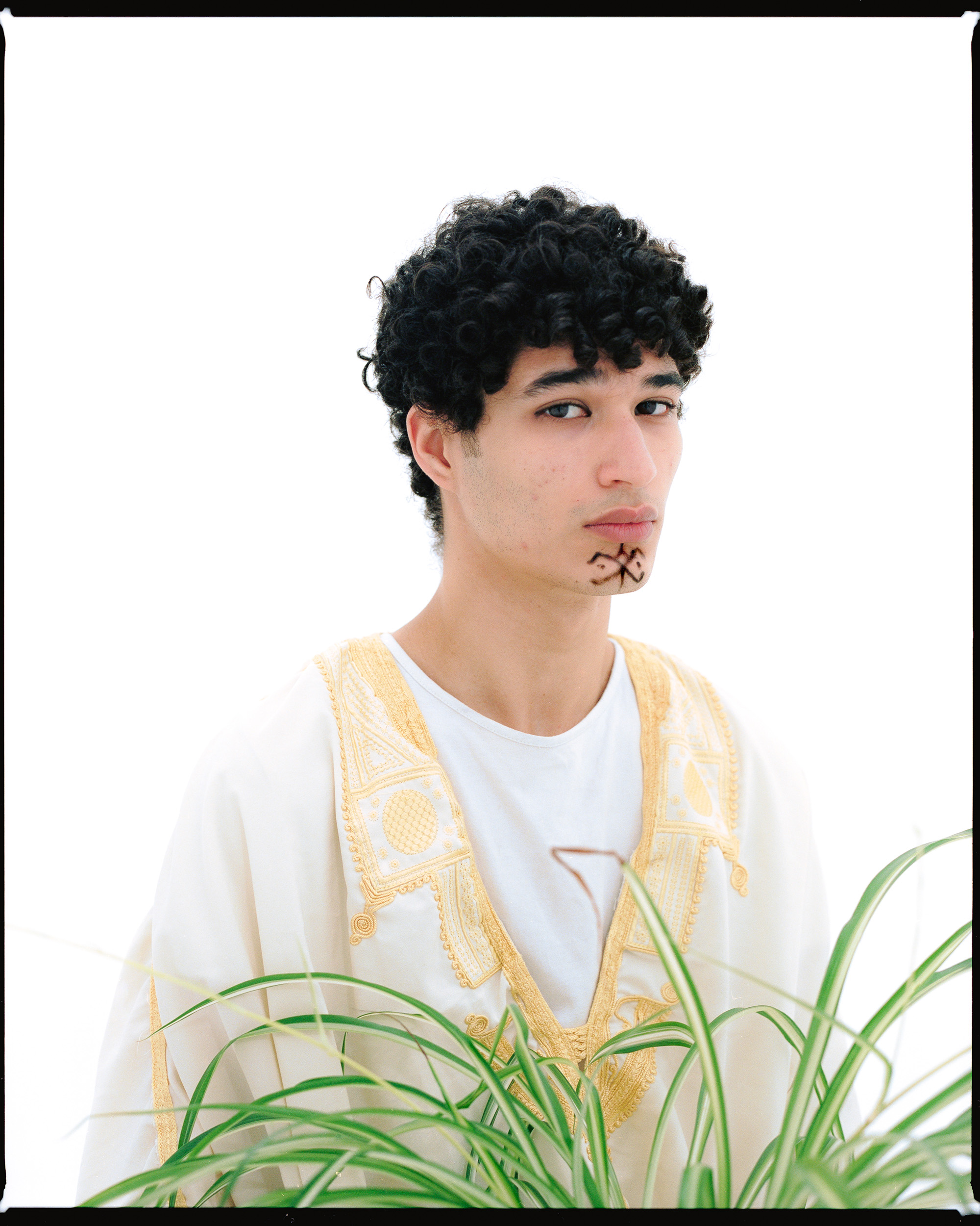 Shot in a studio in Brighton, photographer Benjamin Brooks wanted to shoot Adam wearing traditional Berber (native Algerian) clothing and make up as well as some conventional fashion. This adds to this set of portraits’ dimension.