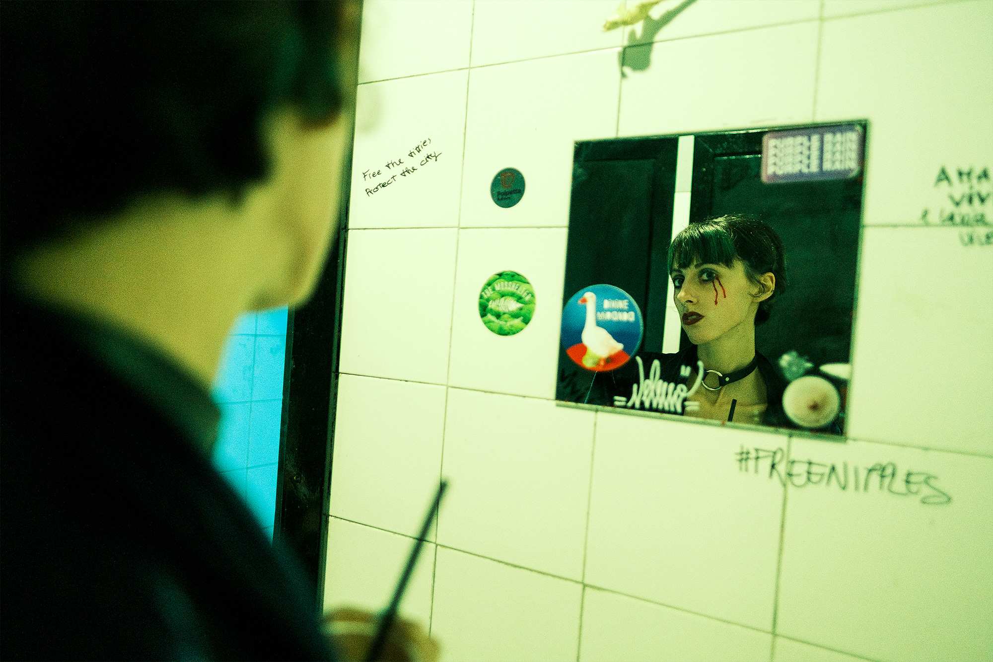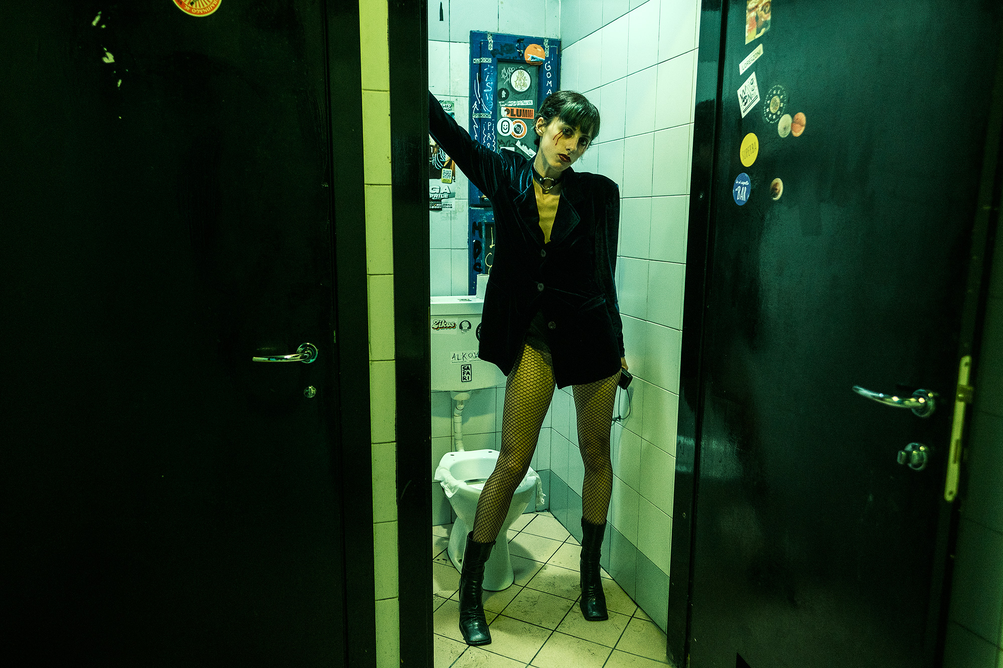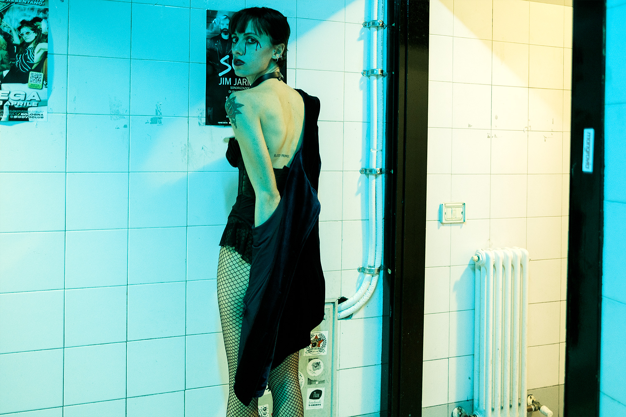 I call it ‘Blood Promise’ (from the Swans song and the model’s tattoo) and it’s a fun improv shoot I did with a model and friend of mine in an underground club’s toliets, with a punk attitude and a couple of gin & tonics in our hands, at about 4 am at Halloween.