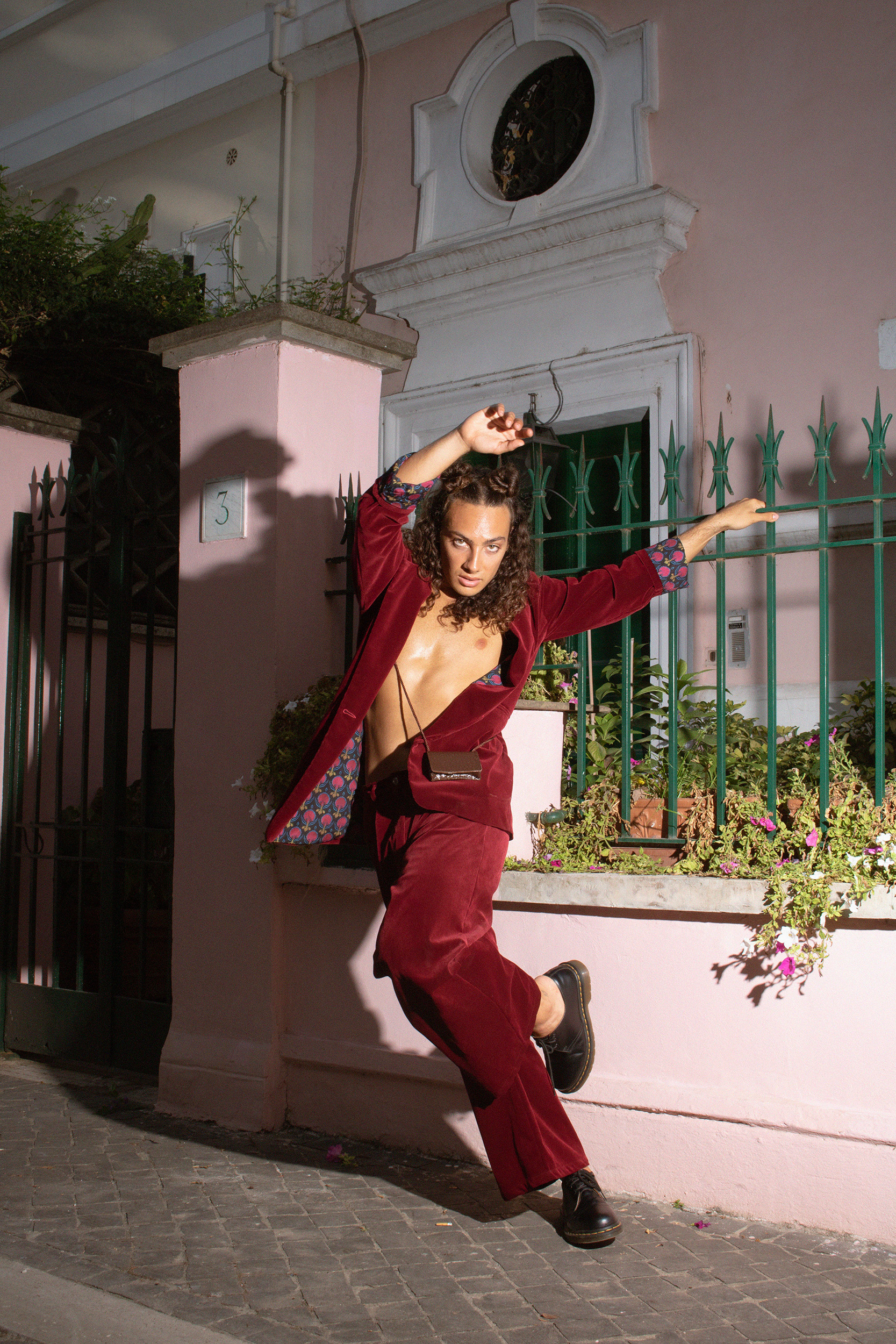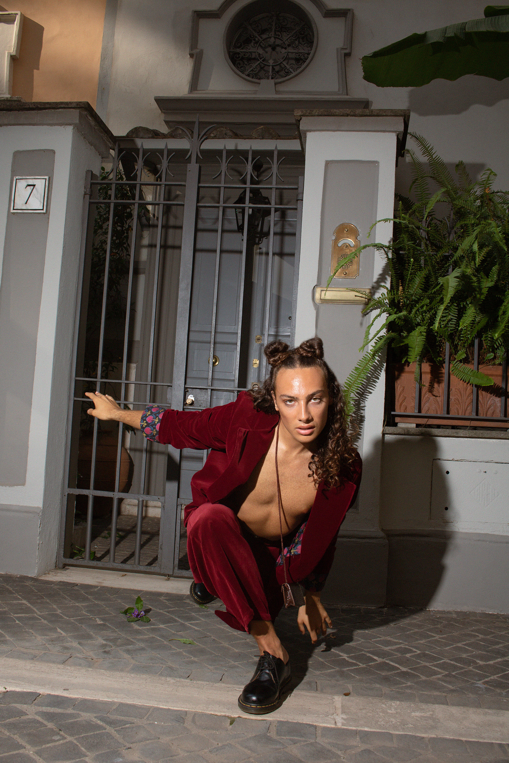 The idea behind the editorial is about this young man living his daily life in Rome. As the day goes on, he finds his true identity through expression in clothing, hence “La Dole Vita”, the sweet life, which he obtains by accepting his true selfย through fashion. It’s a mix of film and digital photography.ย
