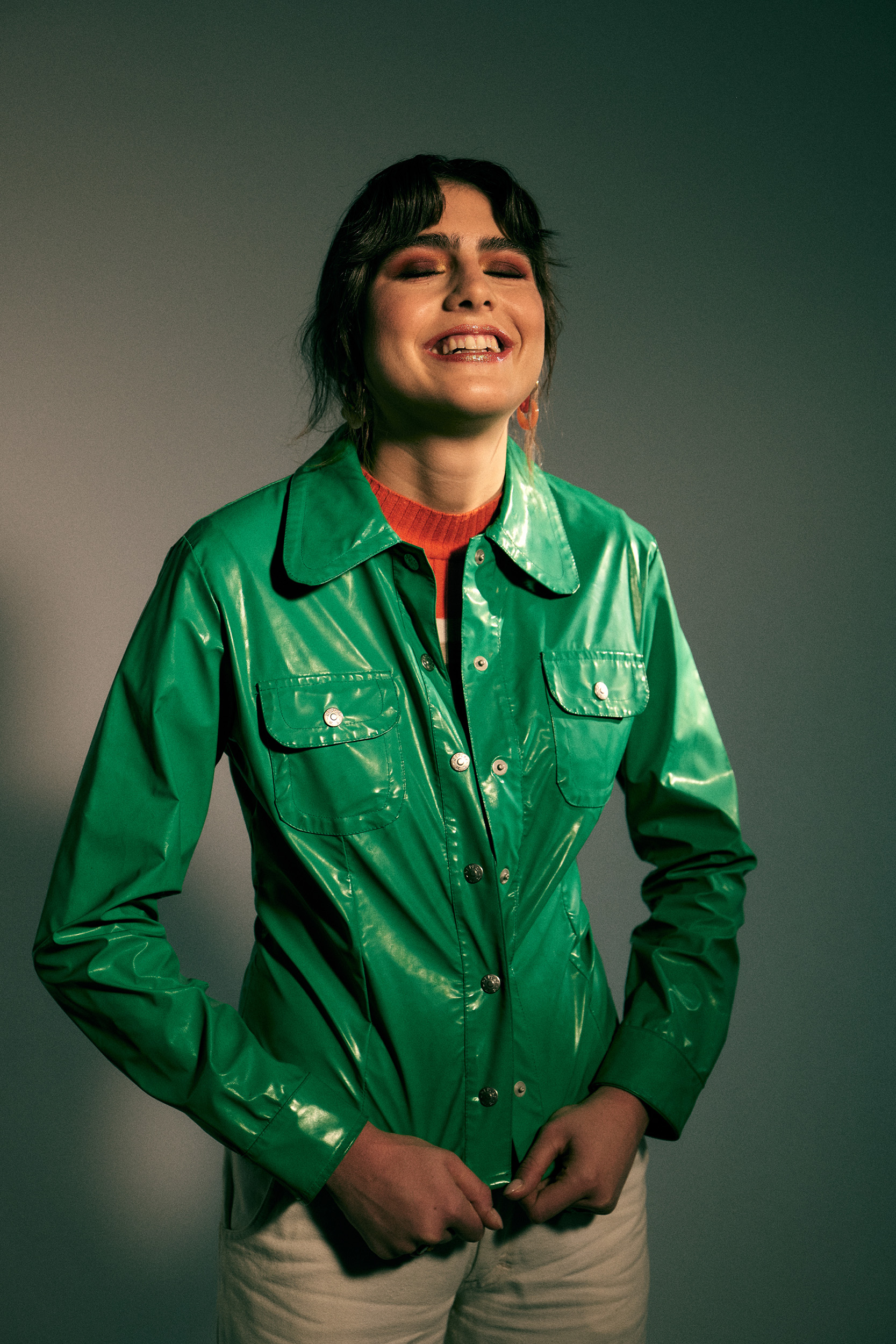 shirt: Replay; sweater & jeans: vintage stylist’s archive; jewelry: Room