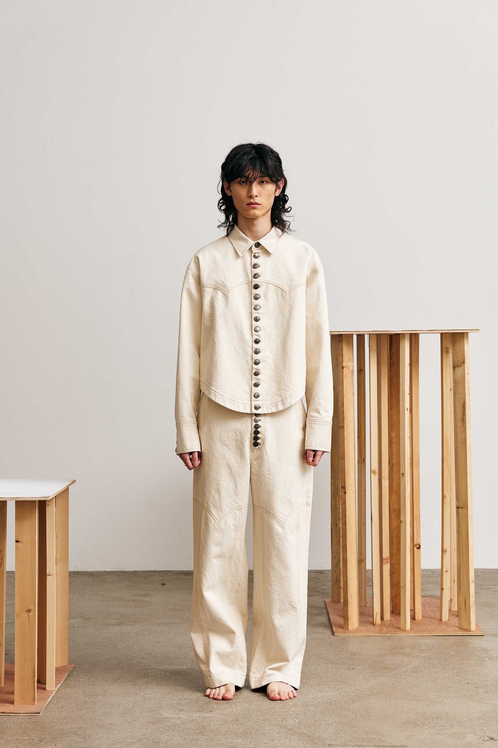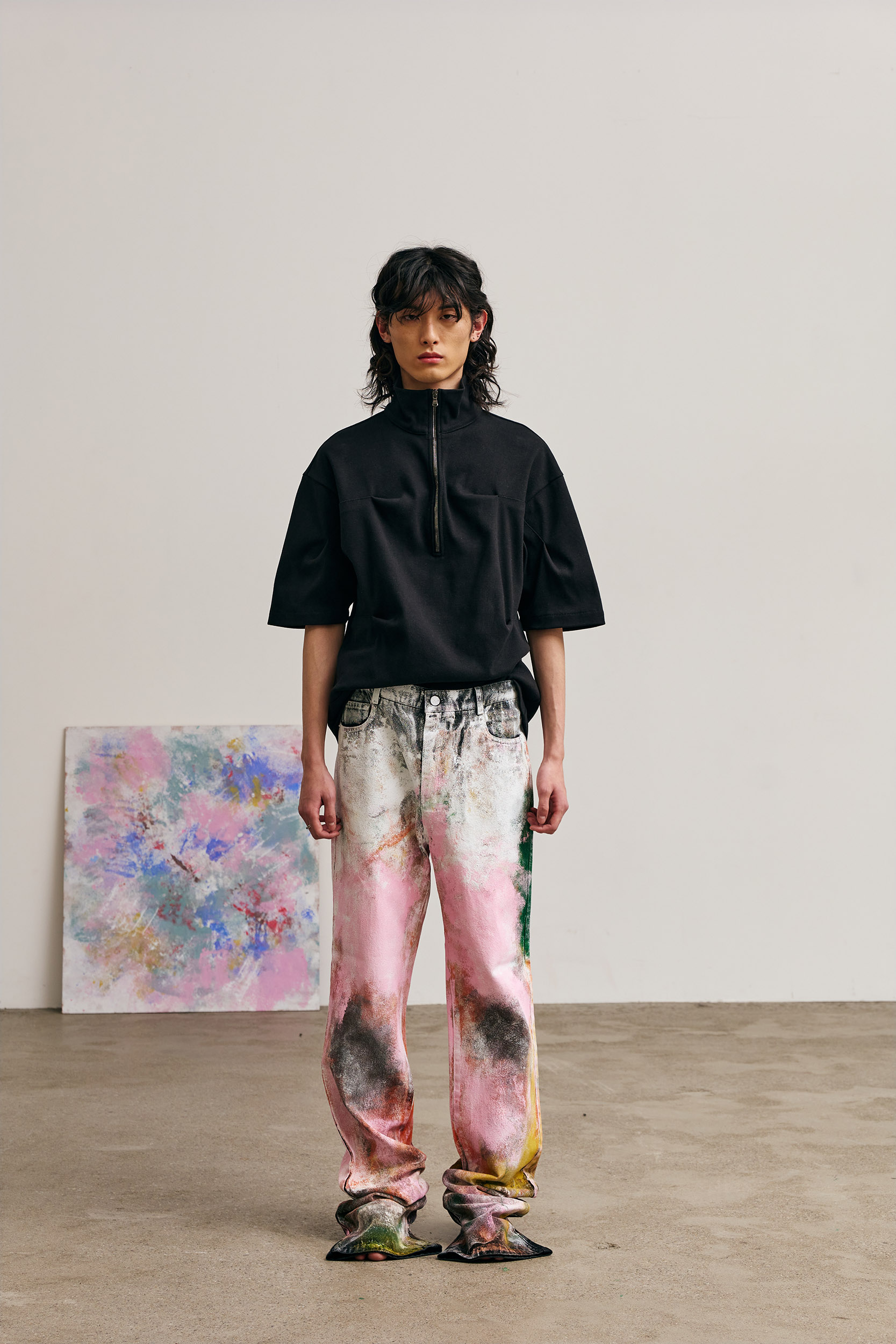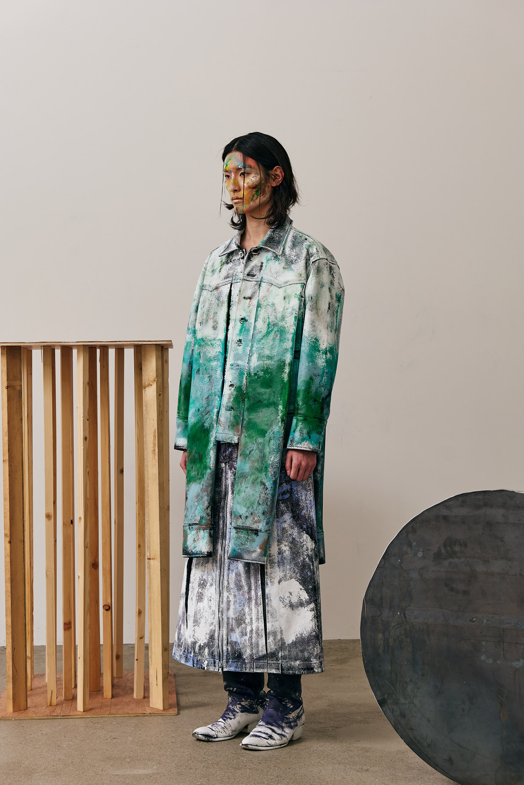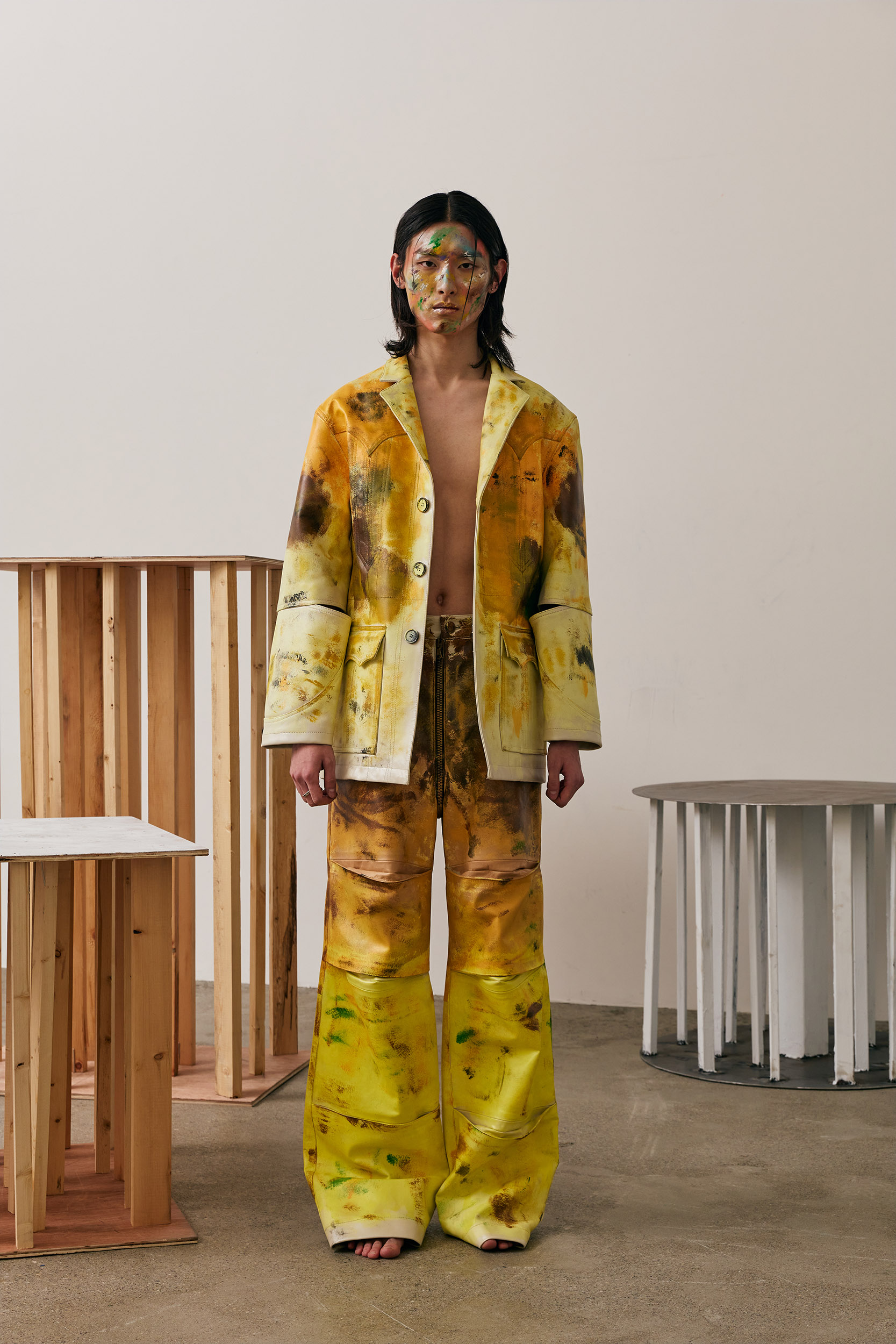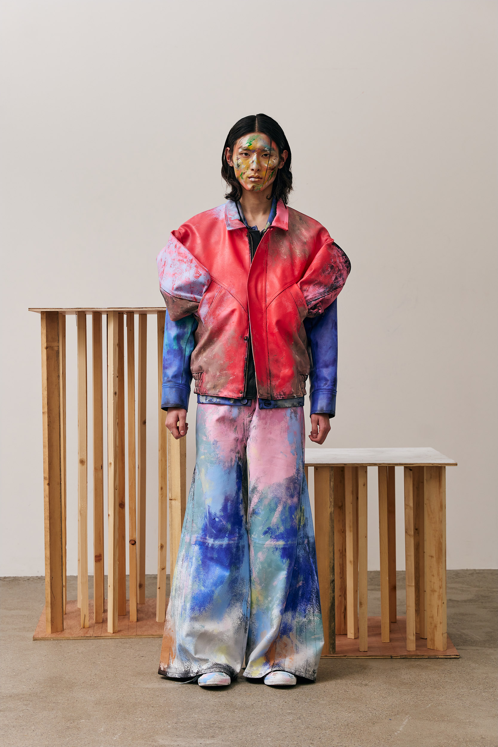 Along with the influence of this rock band, FRANZ WEST’s READY-MADE, which I encountered in Centre Pompidou during my trip to Paris in my 20s, influenced this collection as well.