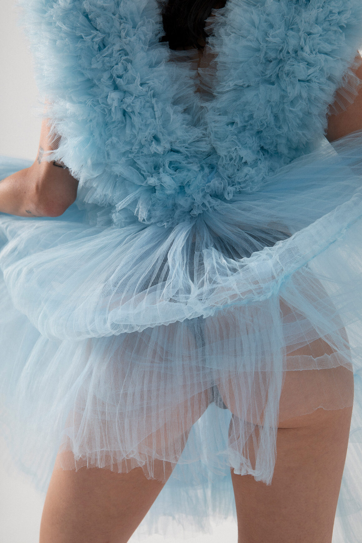 My intent was to use transparent dresses with the presence of tulle to emphasize the lightness with which situations sometimes evolve.