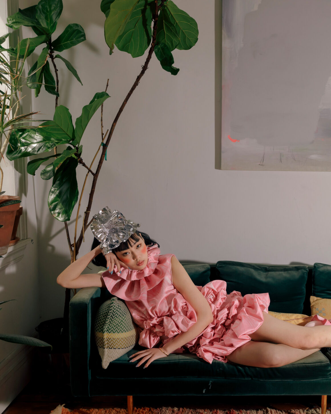 Each collection by Dairu Ren tells a unique and fascinating story through meticulously created components. She desires to merge the fine craftsmanship of slow fashion with avant-garde design and to strike a balance between functionality and artistry. Dairu derives most of her inspiration from the production process, and she hopes that people can immerse themselves in this intricate art form. Her knitting is becoming increasingly imaginative and adventurous as she incorporates various materials and traditional yarns. She redefines and emphasizes the ways in which clothing may connect persons and its impact on society, thereby enabling fashion to serve as a conversation starter for complicated social issues.