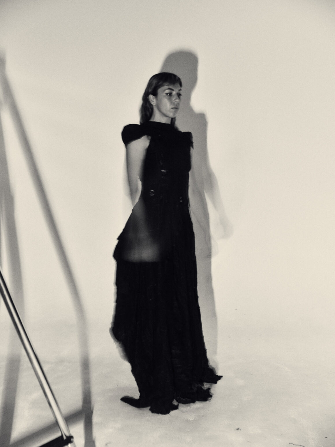 Grief is the Thing with Feathers is an editorial inspired by the novel of the same name, and the physical expression and weight of grief. The tonality darker palette, the crow-like expression, the sensitivity. These images are all about the way grief can manifest itself and present itself, and how it feels to go through the stages. Additionally the styling is by designers working with sustainability, in relation to the environment.