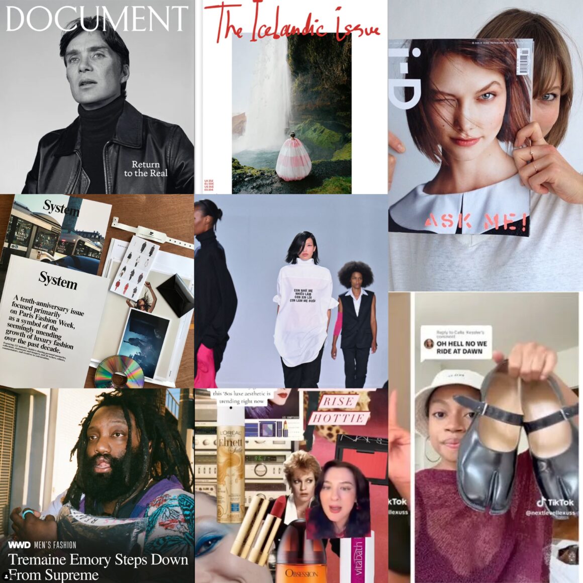 We start out talking our underwhelming feelings on the new Helmut Lang collection, Tremaine Emory leaving Supreme, my recent print magazine purchases, Karlie Kloss possibly buying i-D , the Tabi swiper, new TikTok creator discoveries, and some other random bits