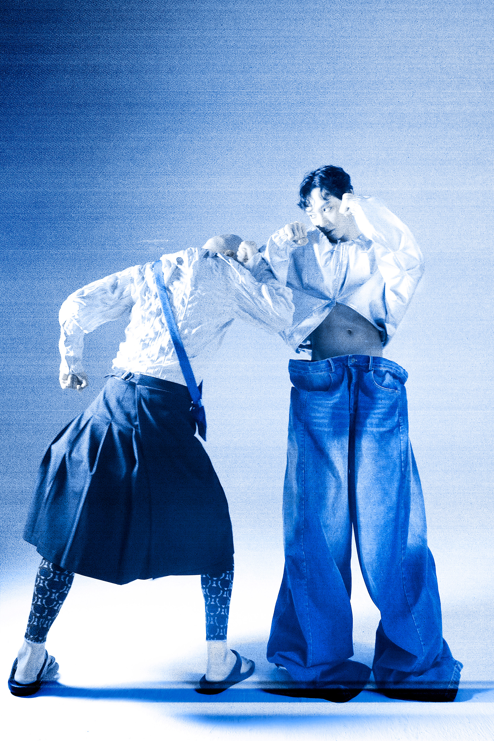 This photo shoot tells a story and is inspired by the movie “Gattaca”, the two male leads work together for each other’s dreams. Despite facing many difficulties, they still step into their own.