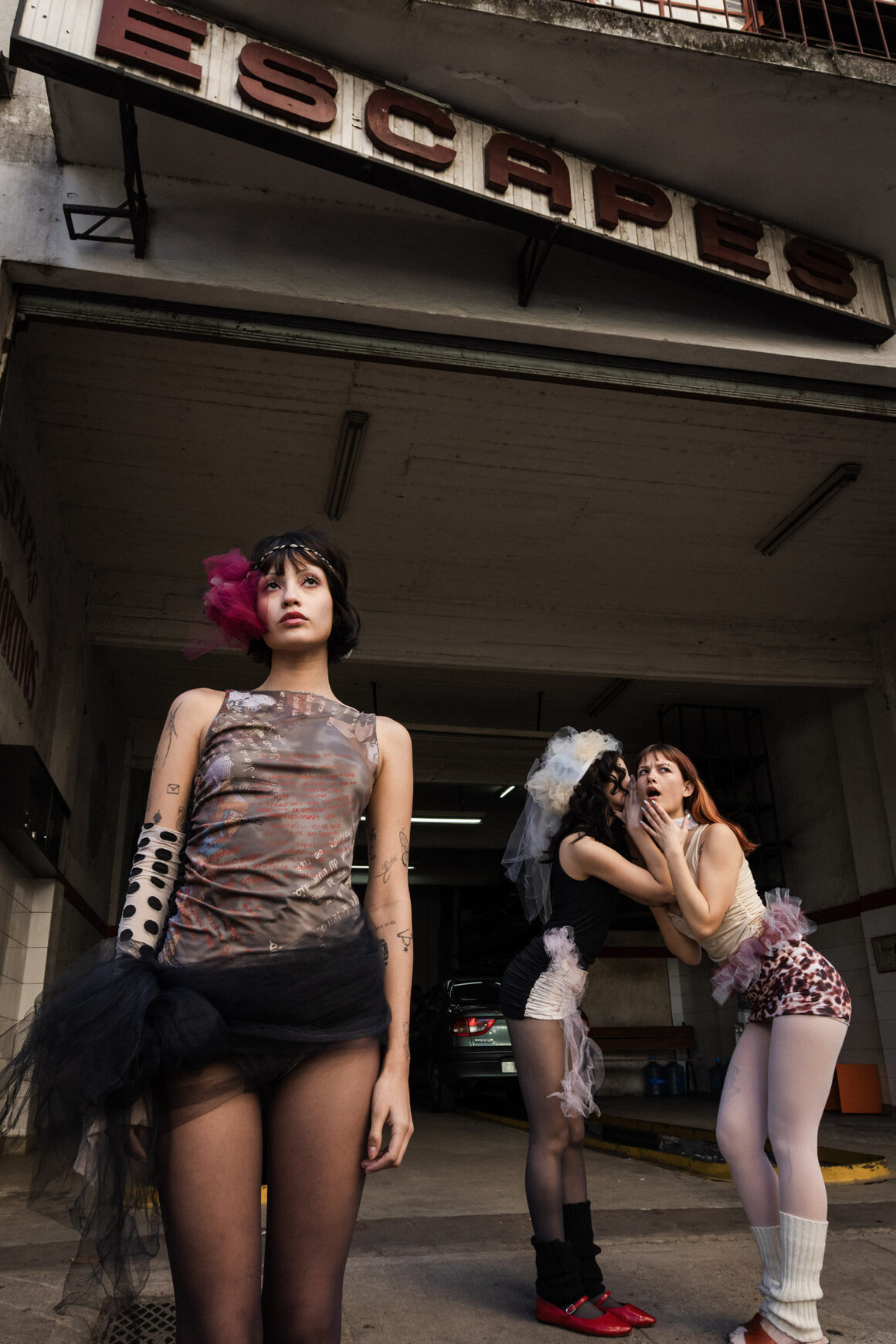 Far from betraying its essence, Neo Antonieta reincarnates in a contemporary key: tulle crowns held by paper ribbons, worn laces, scraps turned into dresses and flat shoes that redefine the idea of a new princess.