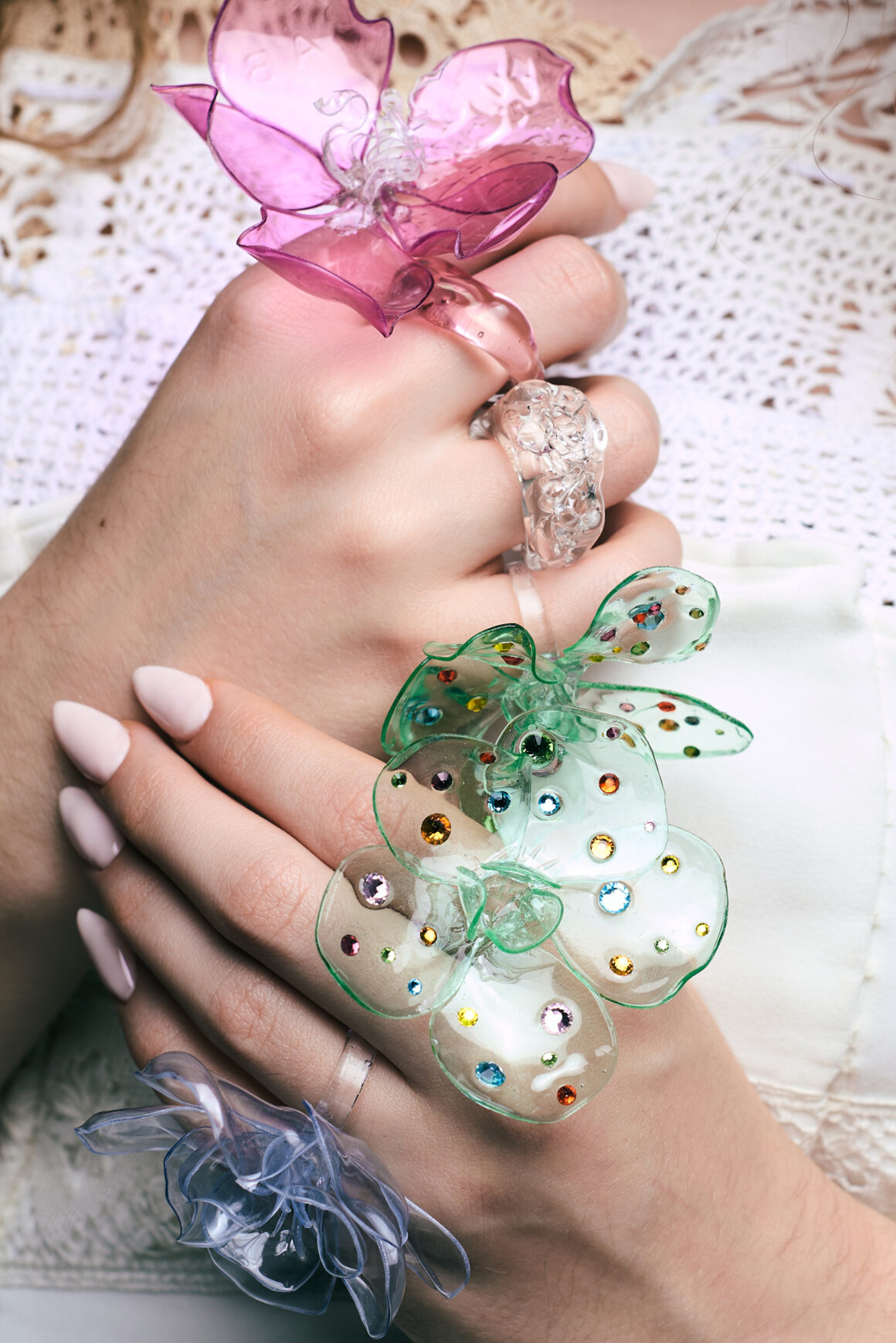 Artesanía experimental anillos color rosa,